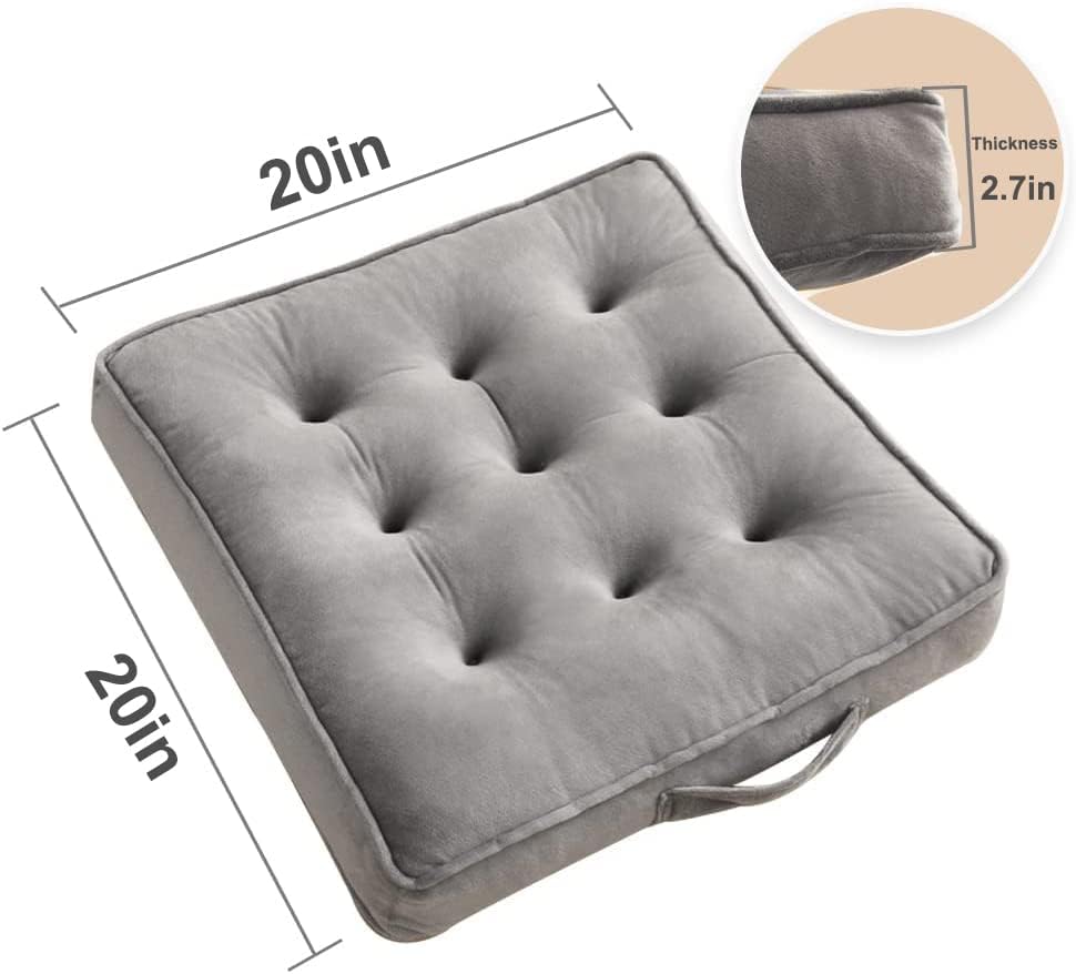 20×20 Inch Floor Pillow, Square Large Pillow Seating for Adults & Kids, Floor Cushion for Living Room Tatami, Seat Cushion for Chair, Sofa, Yoga (Grey)