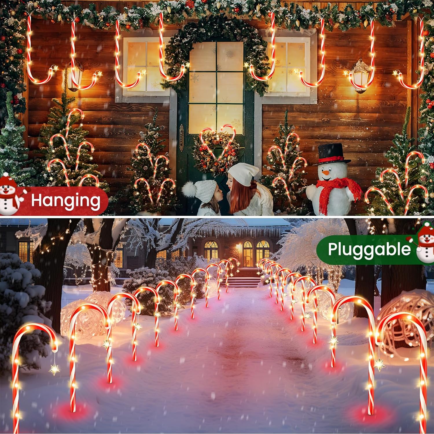 24 Pack Christmas Decorations Outside, WdtPro 19″ 144 LED Bright Solar Christmas Candy Cane Pathway Lights with Star and 8 Modes, Waterproof Outdoor Christmas Decorations for Yard Garden Decor