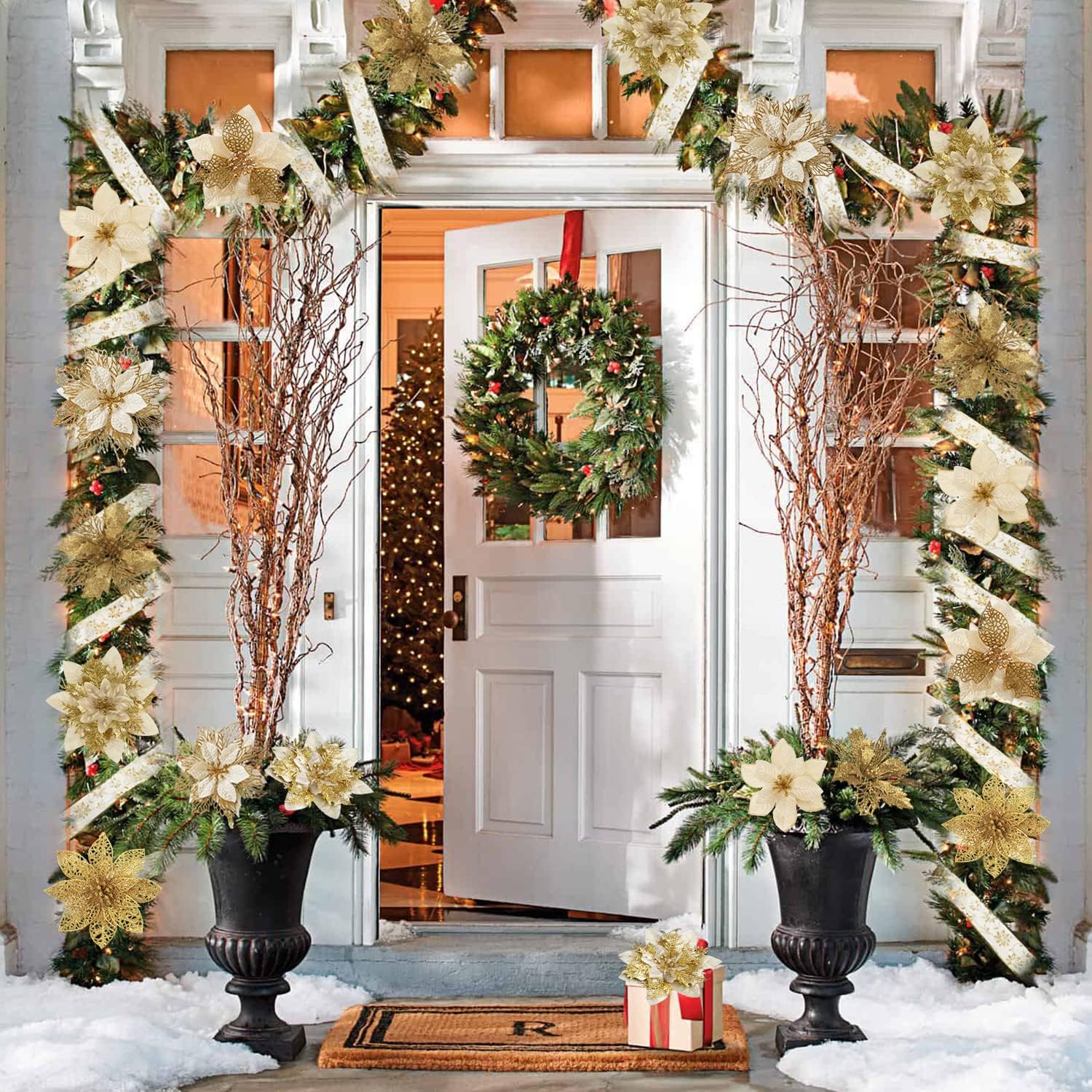 / 26 Pcs Gold Christmas Decorations Set, 6 Style Poinsettias Artificial Christmas Flowers with 16 Yards Christmas Tree Ribbon Ornaments for Winter Holiday DIY Crafts Indoor Outdoor Home Decor