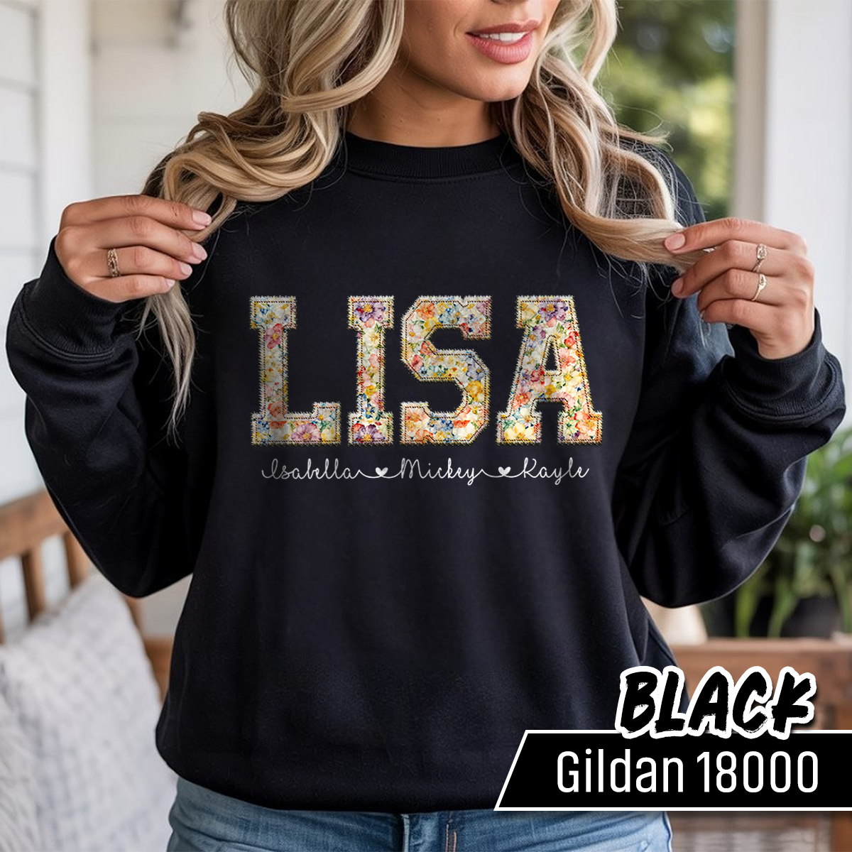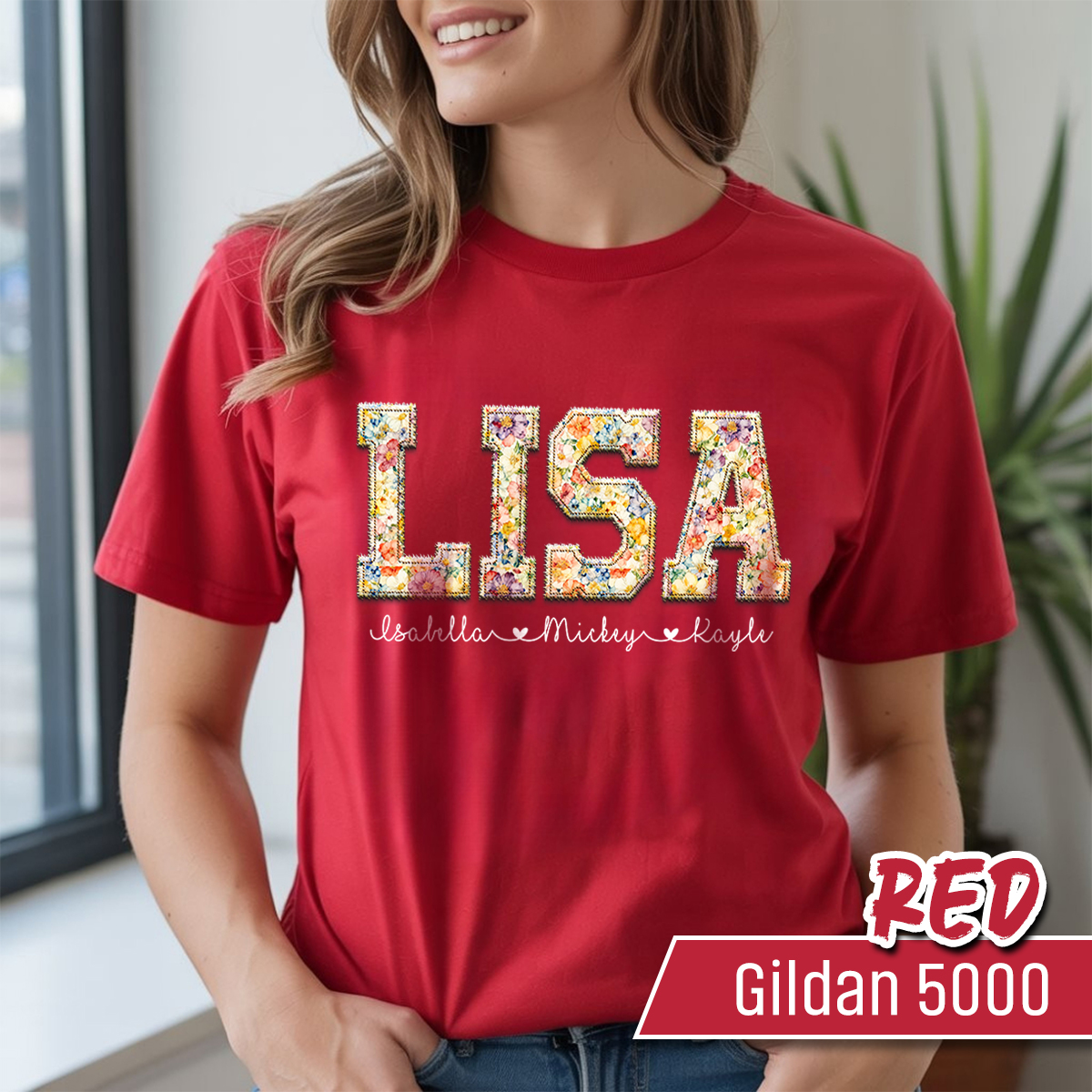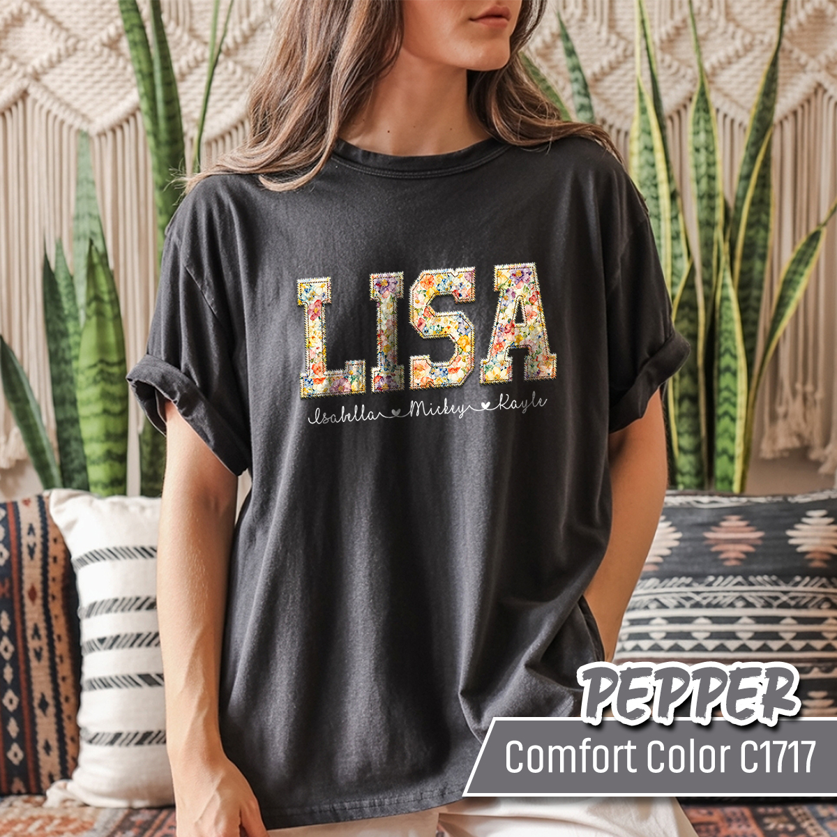custom name shirt, floral name shirt, faux embroidery tee, flower name tee, personalized shirt, floral patch shirt, custom word shirt, floral graphic tee, trendy custom tee, personalized gift, gift for her, custom lettering tee, mothers day gift