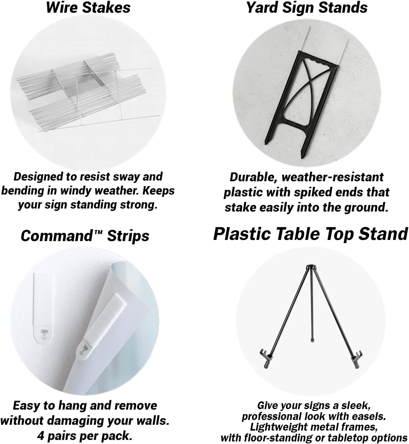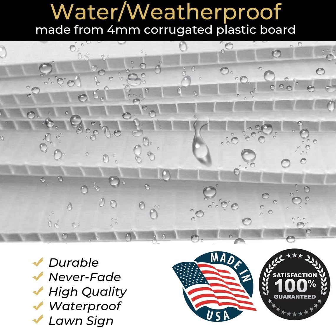 Get seen day after day with messages you can place and re-place wherever you want. Our affordable yard signs are fade-resistant and made of durable corrugated plastic, but portable enough to take with you wherever you go. They’re perfect for real estate, construction sites, politics and more. Just add a stand to display them anywhere. Then, get ready to get noticed. 3 available sizes Perfect for indoor or outdoor use, with minimal setup Weatherproof with fade-resistant printing 4mm thick corrugated plastic Don’t forget to add your stand after designing! Stands are not included as a default. We make sure that these outdoor business signs are ready to brave the elements. They’re made of fade- and weather-resistant corrugated plastic, and when used with our plastic yard sign stands, they’re designed to withstand breezes, rain and snow. For an additional charge, you can upgrade your yard sign to include backside printing.