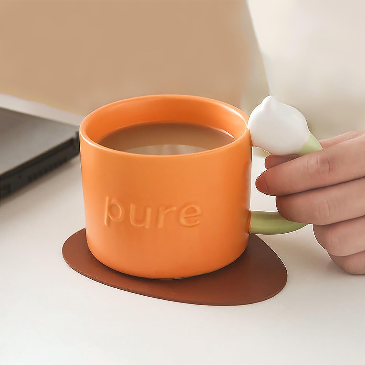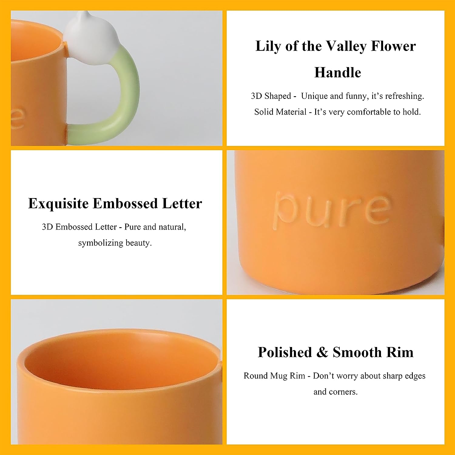 / Ceramic Coffee Mug, 3D Flower Mug, Cute Coffee Tea Cup, Funny Mug, Dishwasher & Microwave Safe, 12oz Orange
