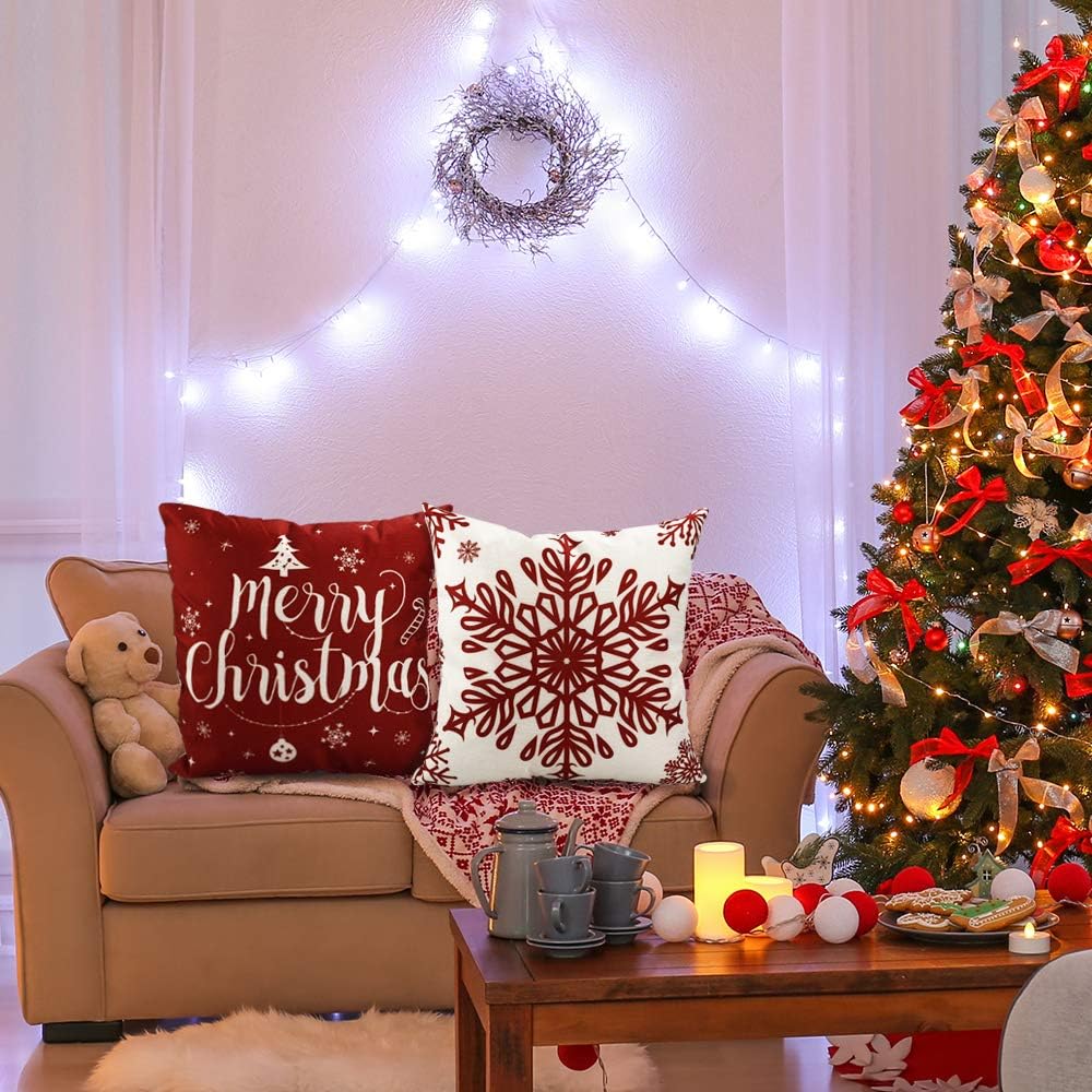 Christmas Pillow Covers 18" x 18", Christmas Decorations, Set of 4 Throw Pillow Covers, Pillow Cases for Couch Indoor Christmas Decor