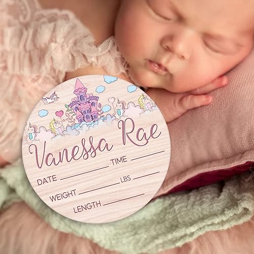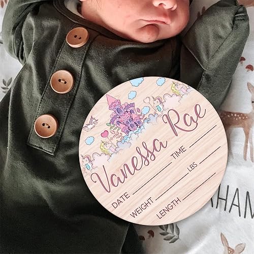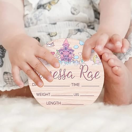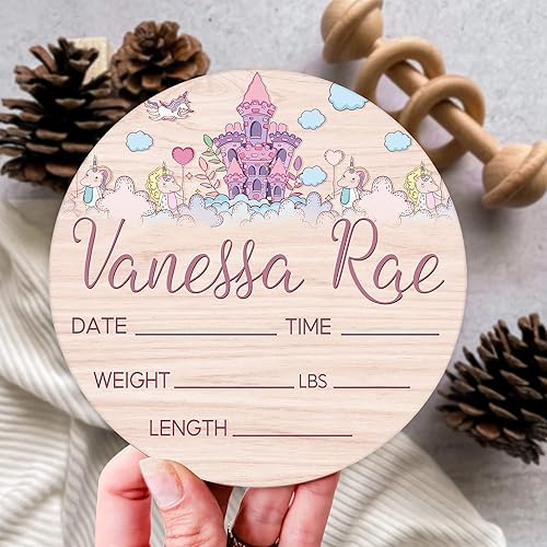 Custom Birth Sign, Round Wood Birth Sign, Princess Birth Sign, Round Wood Birth Sign, Princess Castle Birth Sign, Princess Crown, Personalized Baby Shower Nursery Decor