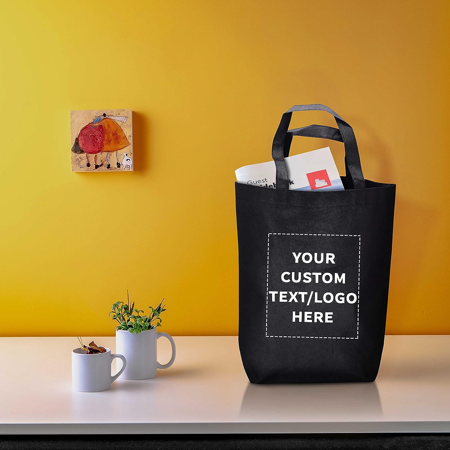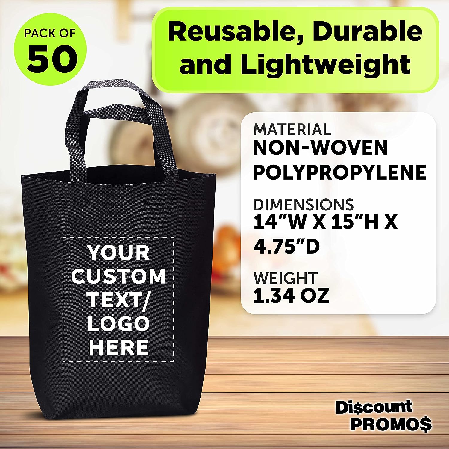 / Custom Large Reusable Heavy Duty Tote Bag – 50 Pack – Personalized Logo, Text – Beach Shopping Bag – Black