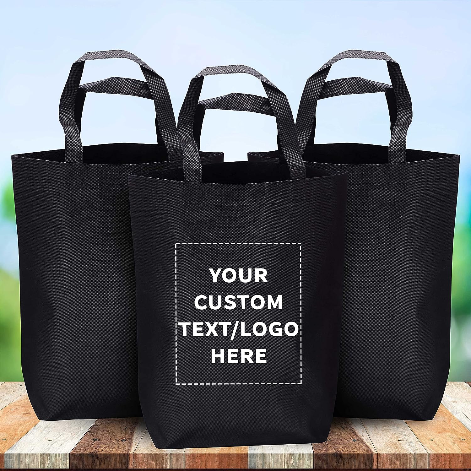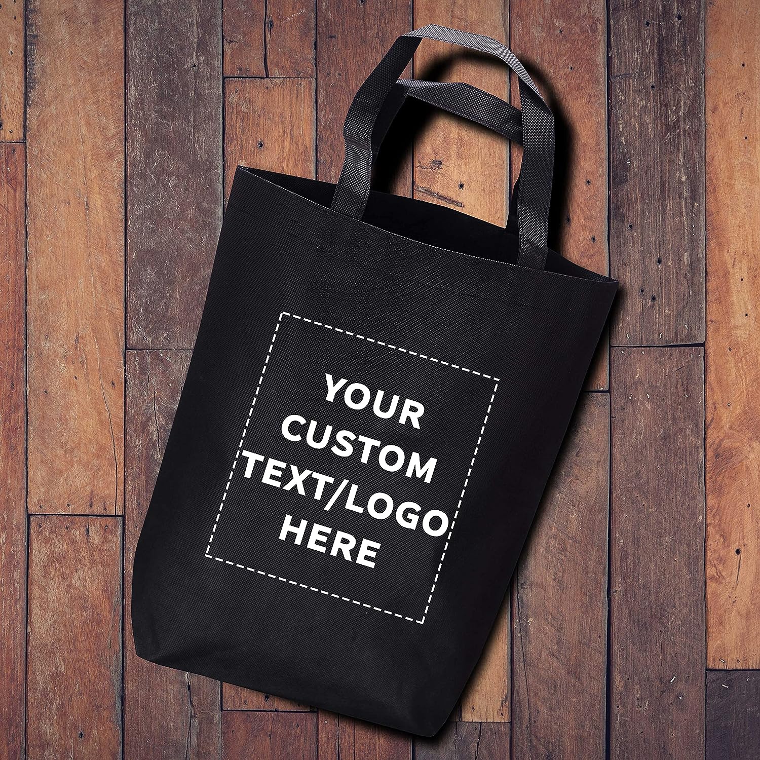 Custom Large Reusable Heavy Duty Tote Bag – 50 Pack – Personalized Logo, Text – Beach Shopping Bag – Black