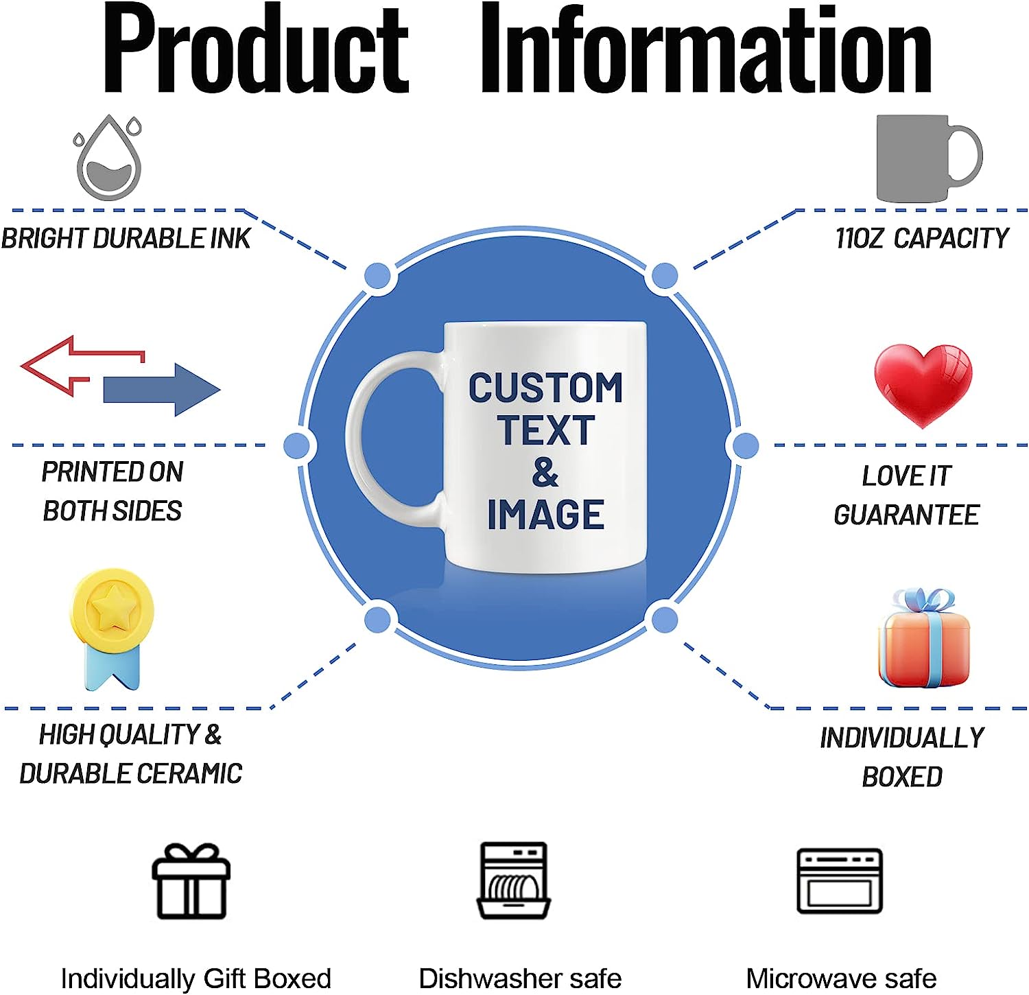 Custom Photo Coffee Mug, Personalized Mug w/Picture, Text, Name – Personalized Gifts for Mom, Boyfriend, Girlfriend, Best Friend, Christmas Gifts, Party Favors Mug 11oz White Wholesale