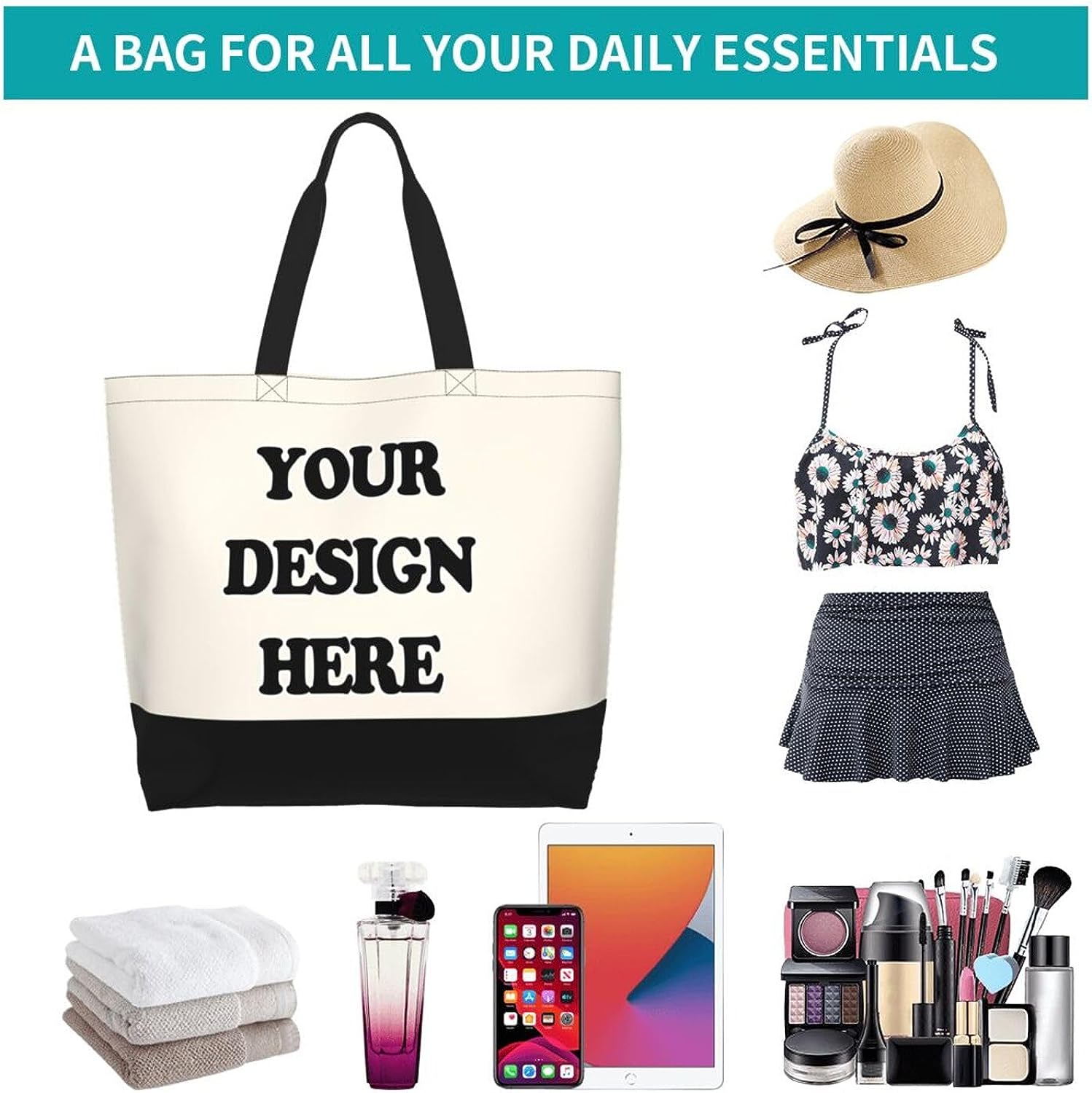 Custom Tote Bags with Team Logo Text Picture for Women Personalized Shopping Handmade Totes