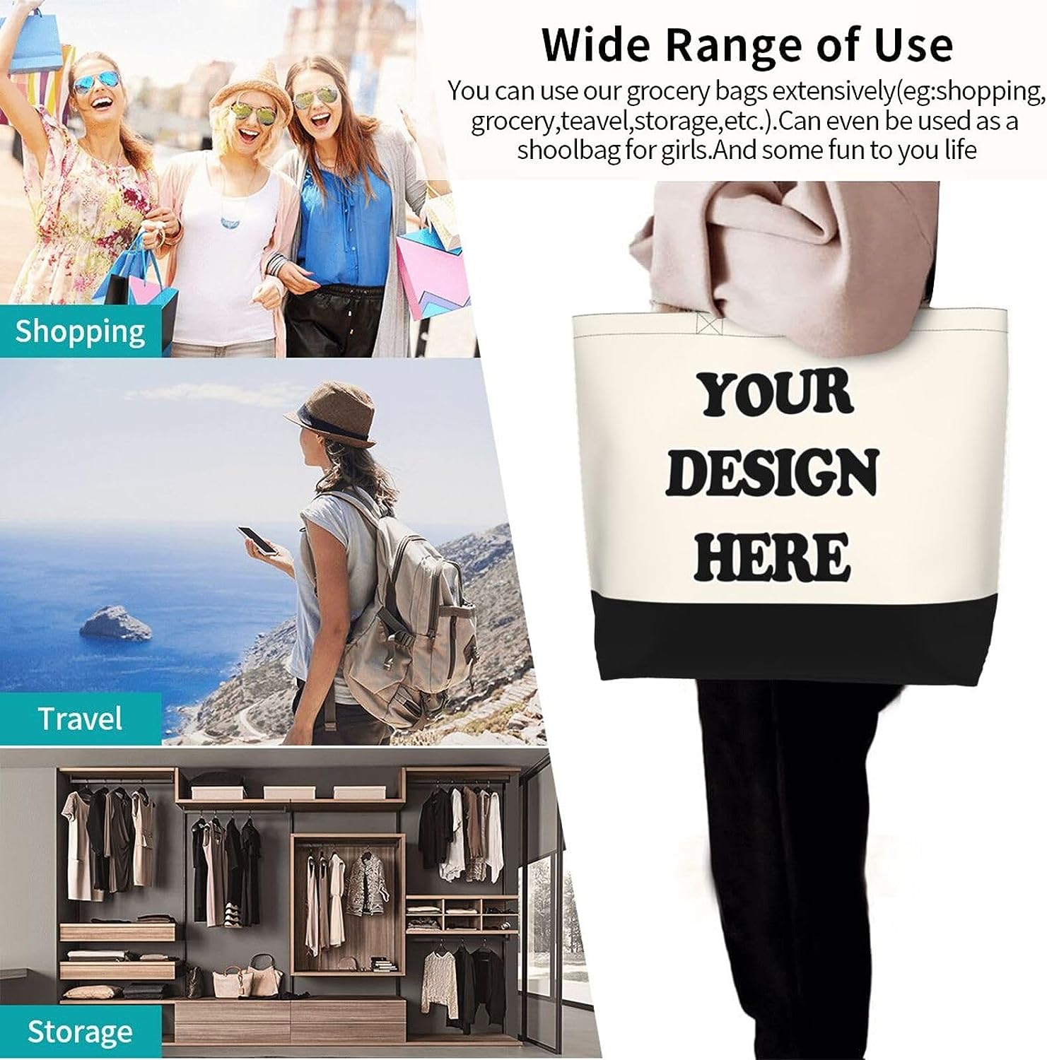 If you are looking for a gift, this stylish shoulder bag is the perfect and beautiful gift for wedding parties and even any occasion, such as birthdays, parties, Thanksgiving, Mother’s Day, graduation ceremonies, etc.Just add your photos and text, and you will get a unique handbag that makes your daily life more convenient.Foldable design, can be reused at any time, does not take up a lot of space.The top is a reinforced shoulder strap that is long enough to be carried by hand or as a shoulder bag.The bag is easily washable so you can reuse them for a long time.