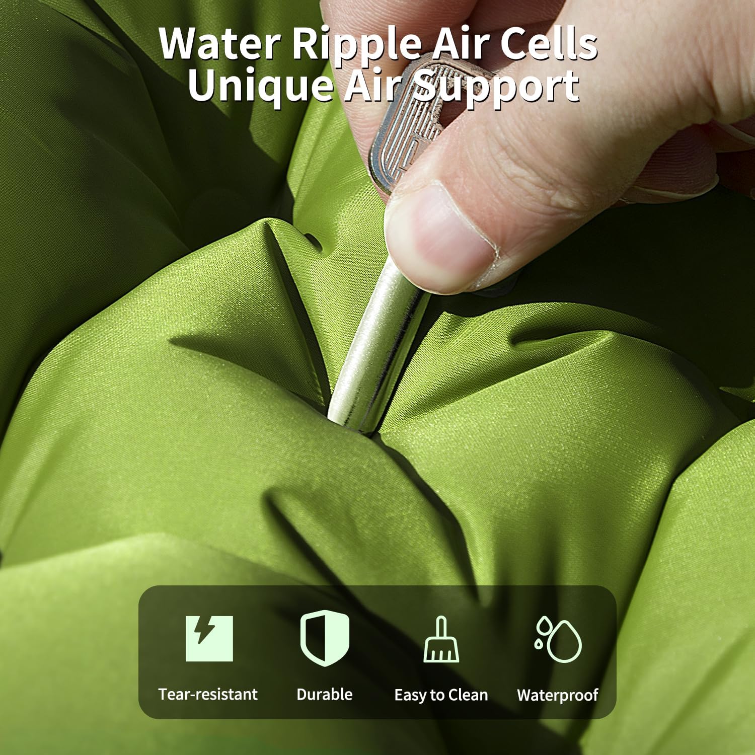 Durable & Comfortable: Made of 40D nylon and TPU coating for durability and tear resistance. Ergonomic design with water ripple pattern and one-piece pillow for ultimate comfort.