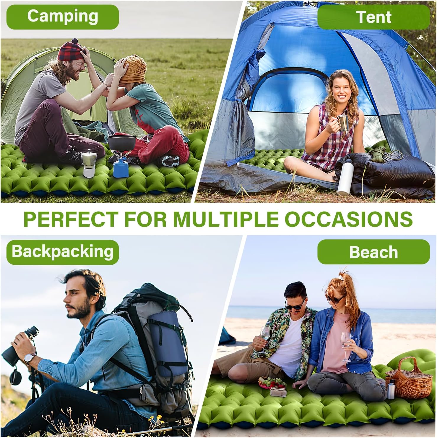 Double Sleeping Pad - Self-Inflating, 4" Extra-Thick with Built-in Pillow and Foot Pump, Inflatable Sleeping Mat for 2 People, Ideal for Backpacking, Hiking, Traveling, Tents, and Portable Camping.