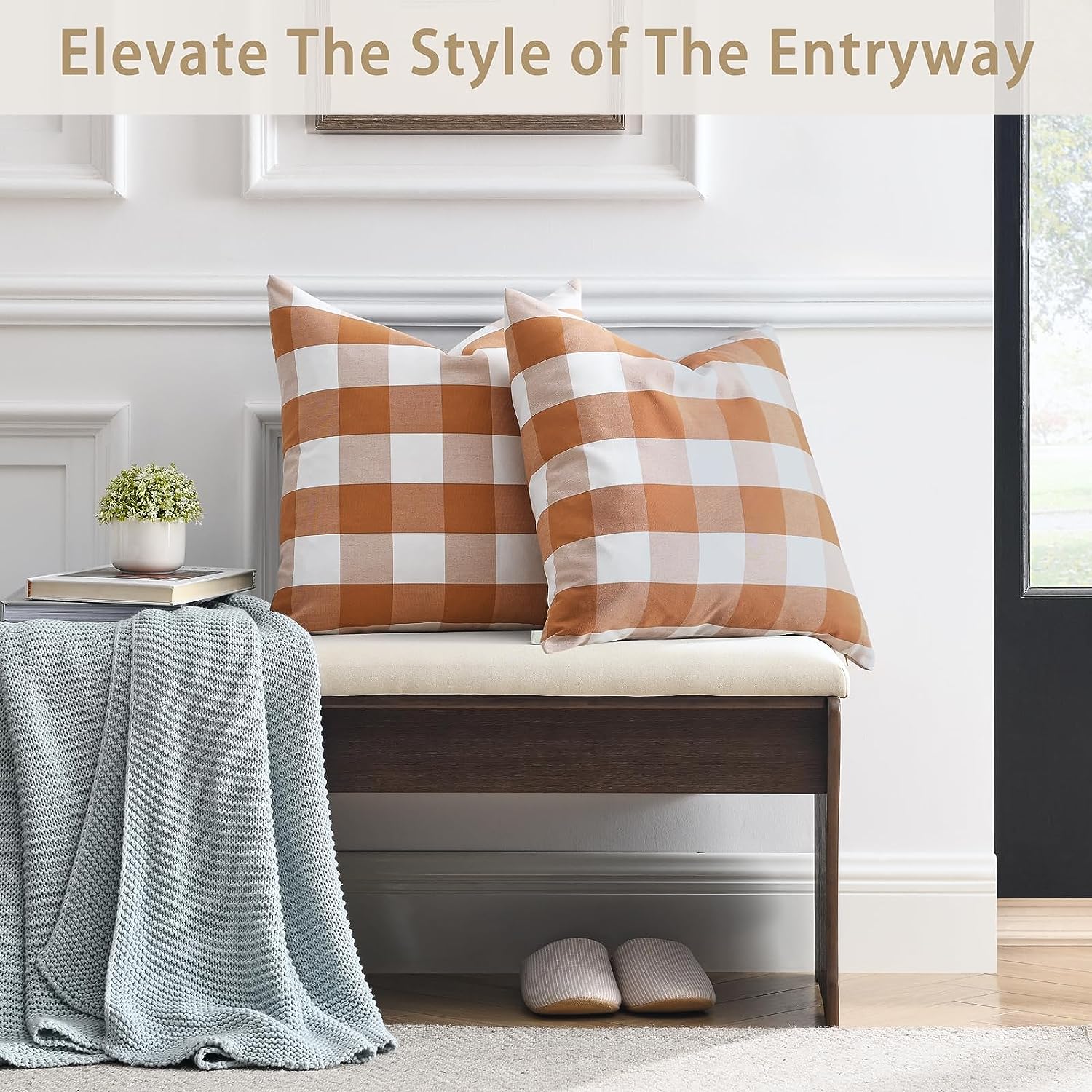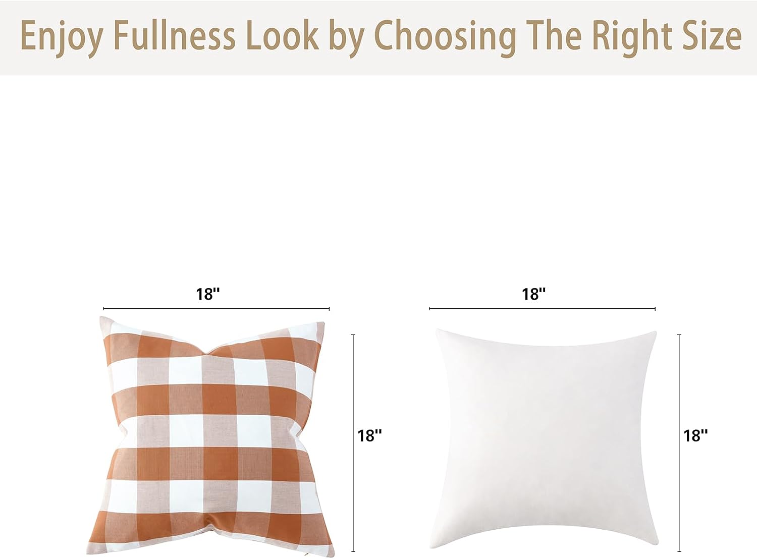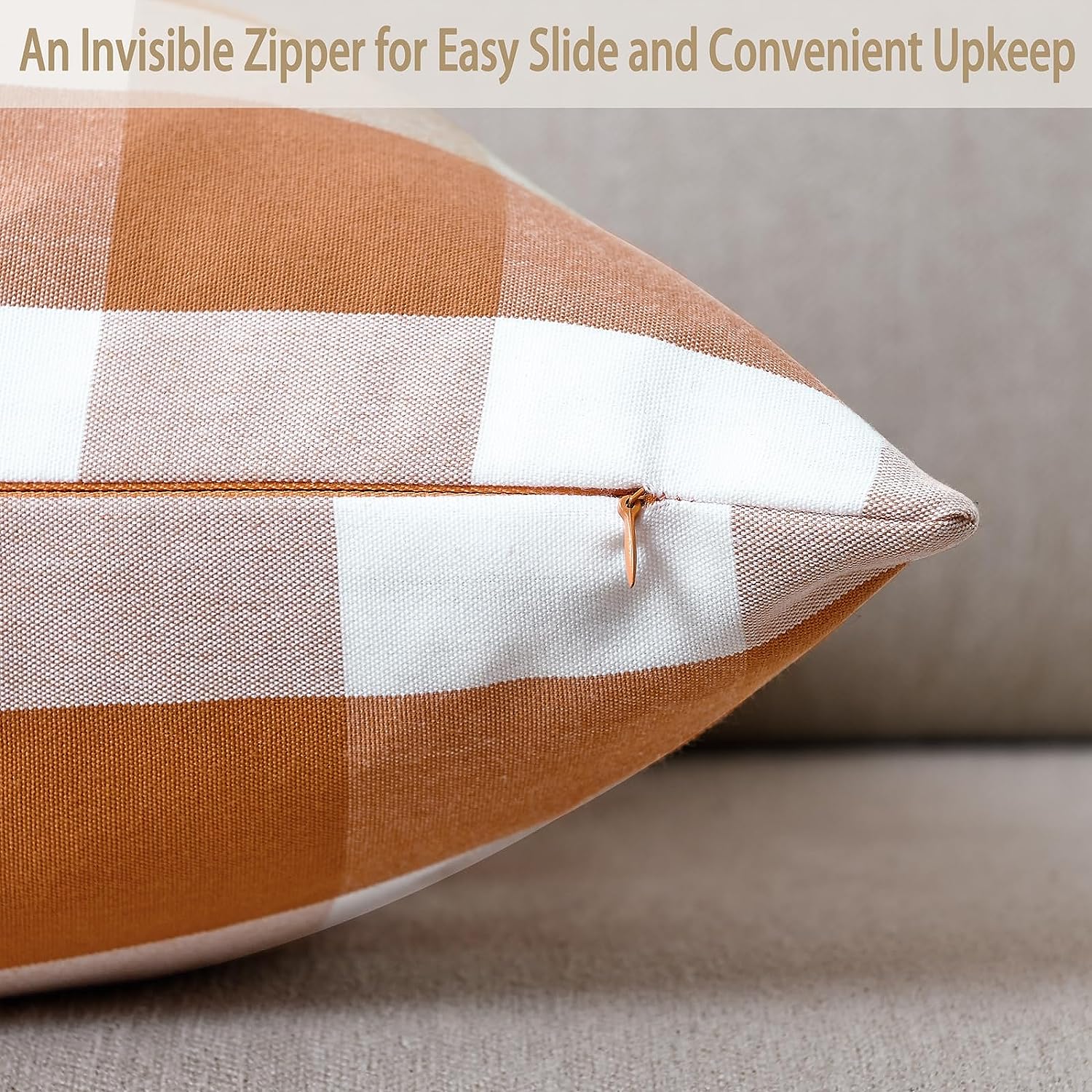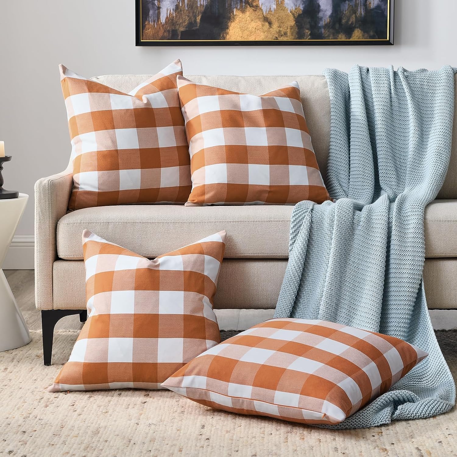 Fall Pillow Covers 18x18 Inches Farmhouse Buffalo Check Plaid Halloween Throw Pillow Covers Orange and White Decorative Square Cushion Pillowcase for Sofa Home Decor, Set of 2