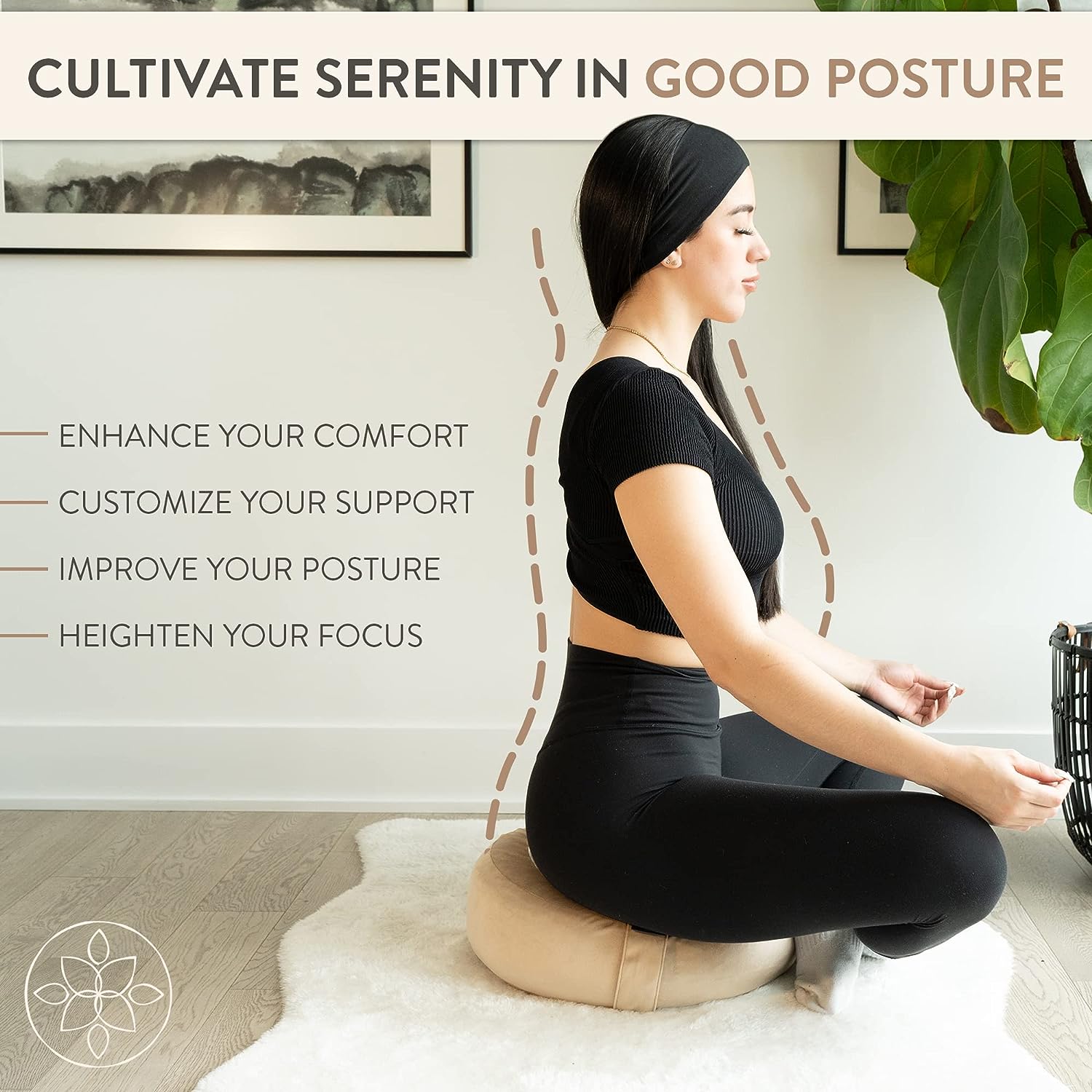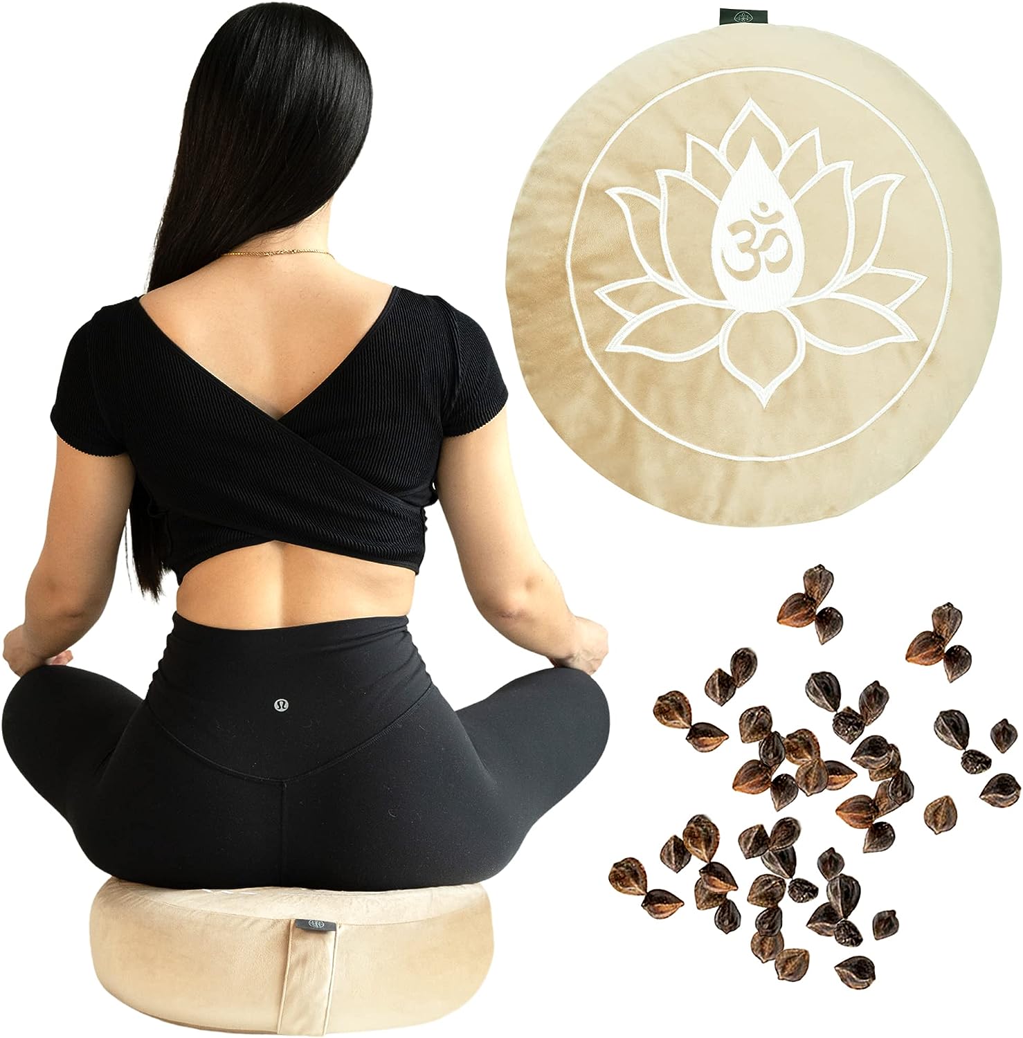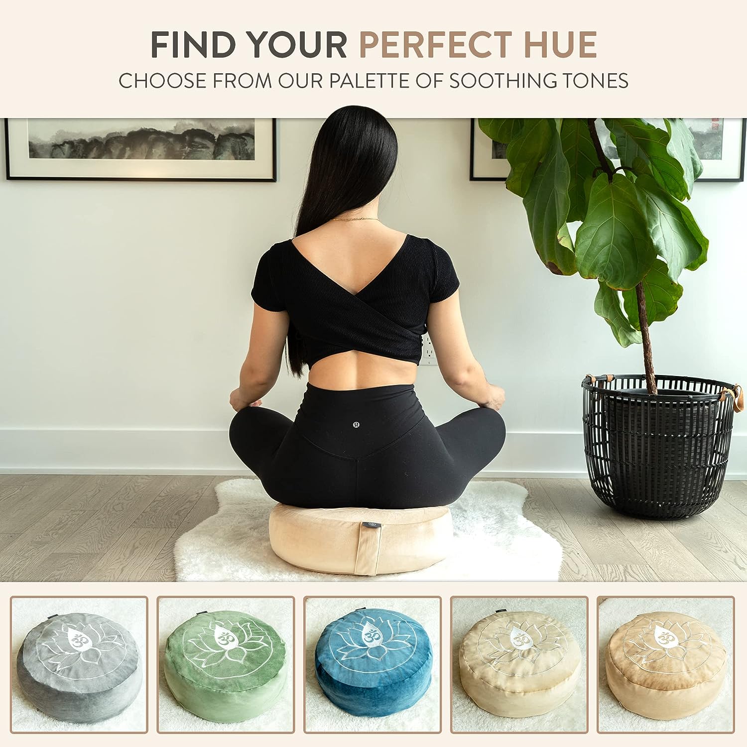 Meditation Cushion - Comfortable Zafu Meditation Pillow - Soft Velvet Meditation Seat Cover + Cotton Cover Option - Yoga Pillow for Floor Seating w/Carry Handle, Floor Pillow, Beige quantity