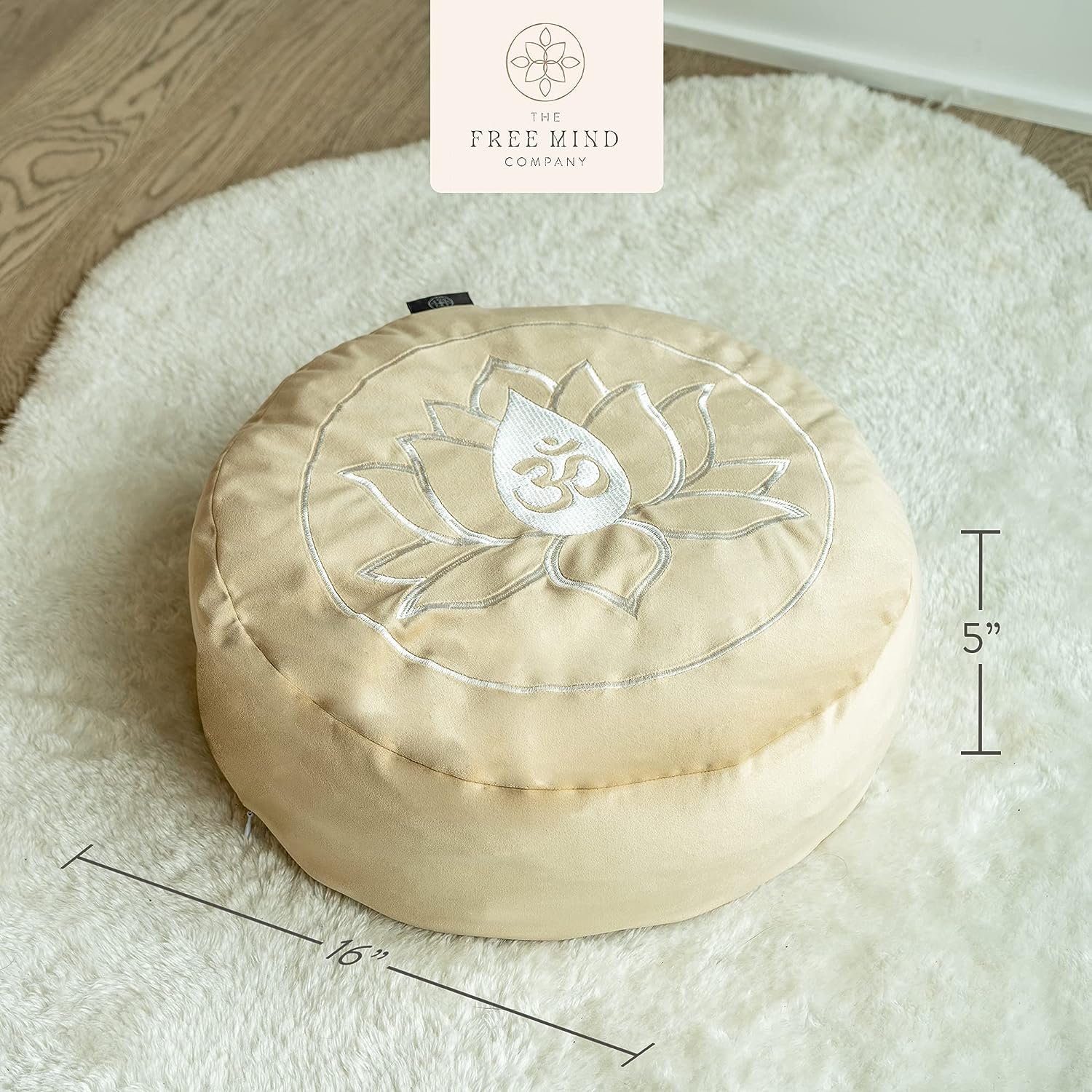 / Meditation Cushion – Comfortable Zafu Meditation Pillow – Soft Velvet Meditation Seat Cover + Cotton Cover Option – Yoga Pillow for Floor Seating w/Carry Handle, Floor Pillow, Beige