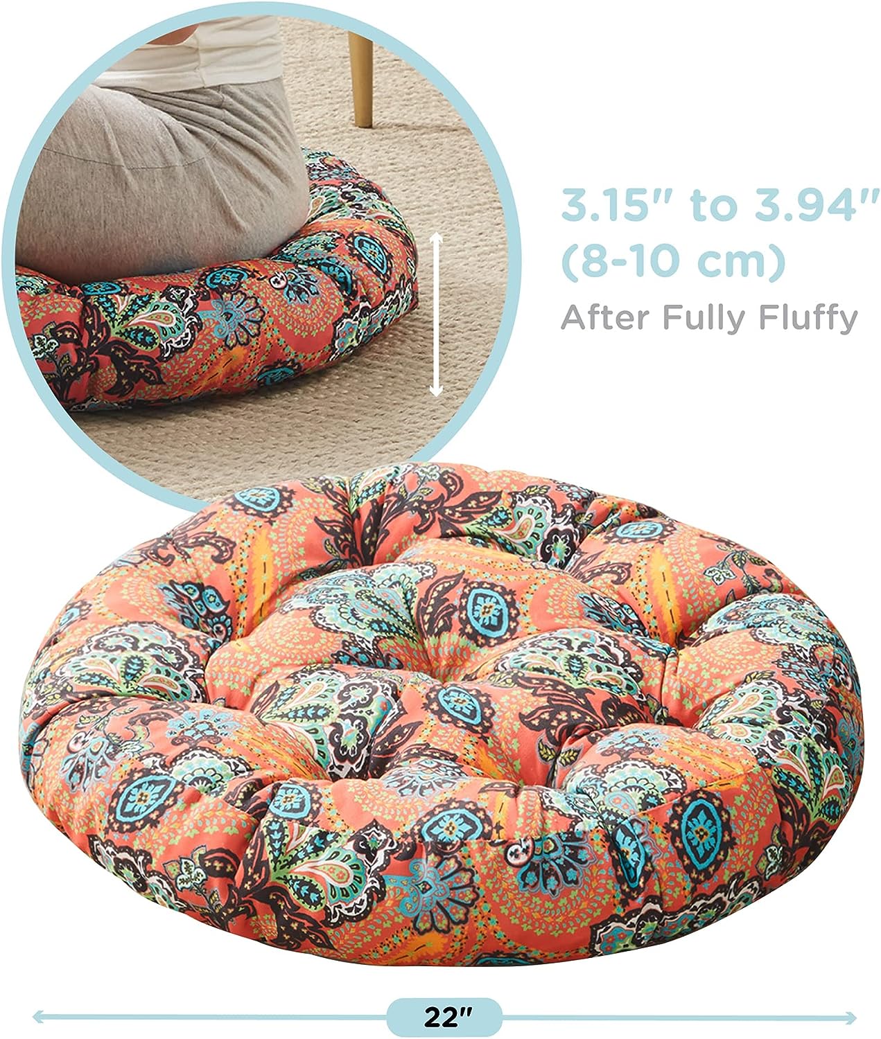 / Meditation Floor Pillow, Boho Pillows Seating for Adults & Kids, Large Round Cushion for Yoga Living Room Tatami Sitting, Memory Foam Added, 22×22 Inch, Poppy Red