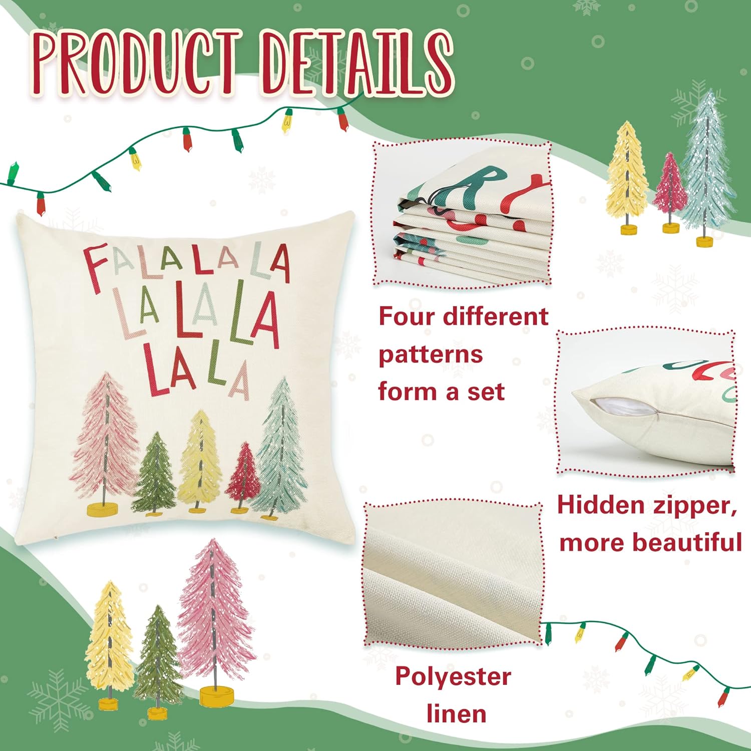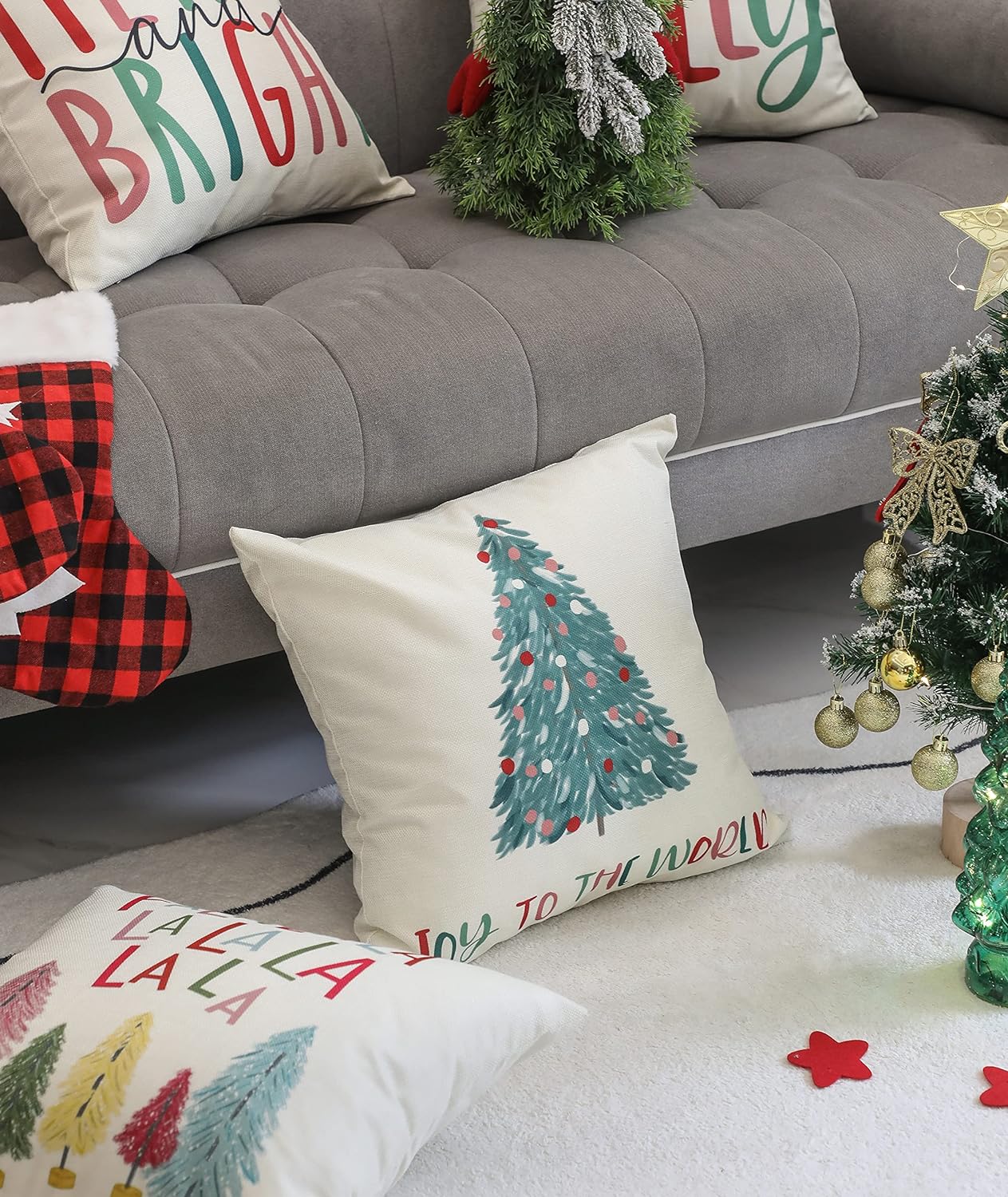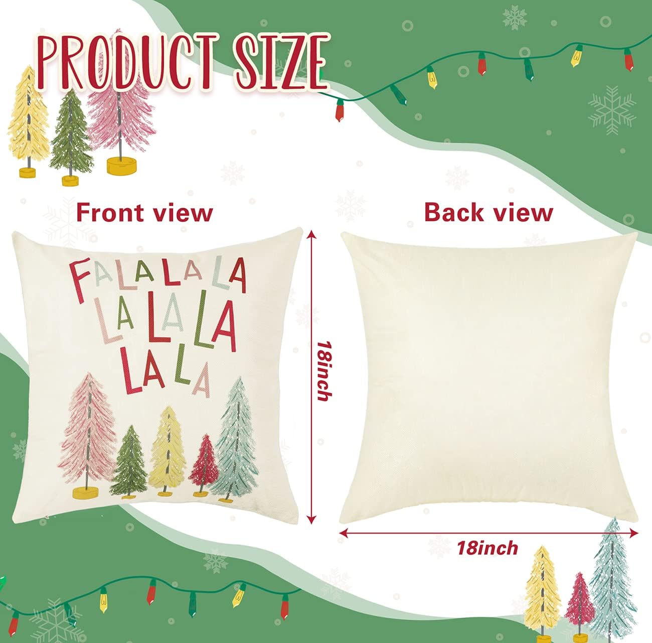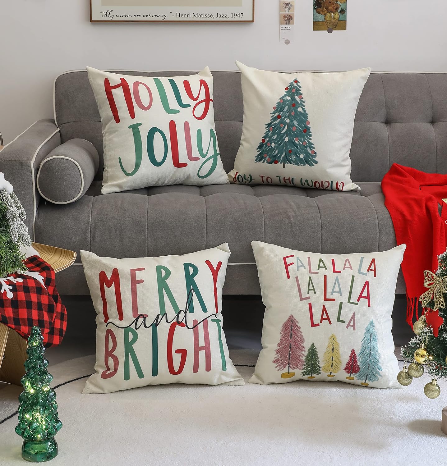 Merry Bright Christmas Pillow Covers Colorful Holiday Holly Jolly Set of 4 Winter Decorative Throw Pillow Covers Cushion Case for Home Sofa Bed Chair (18″ L x 18″ W)