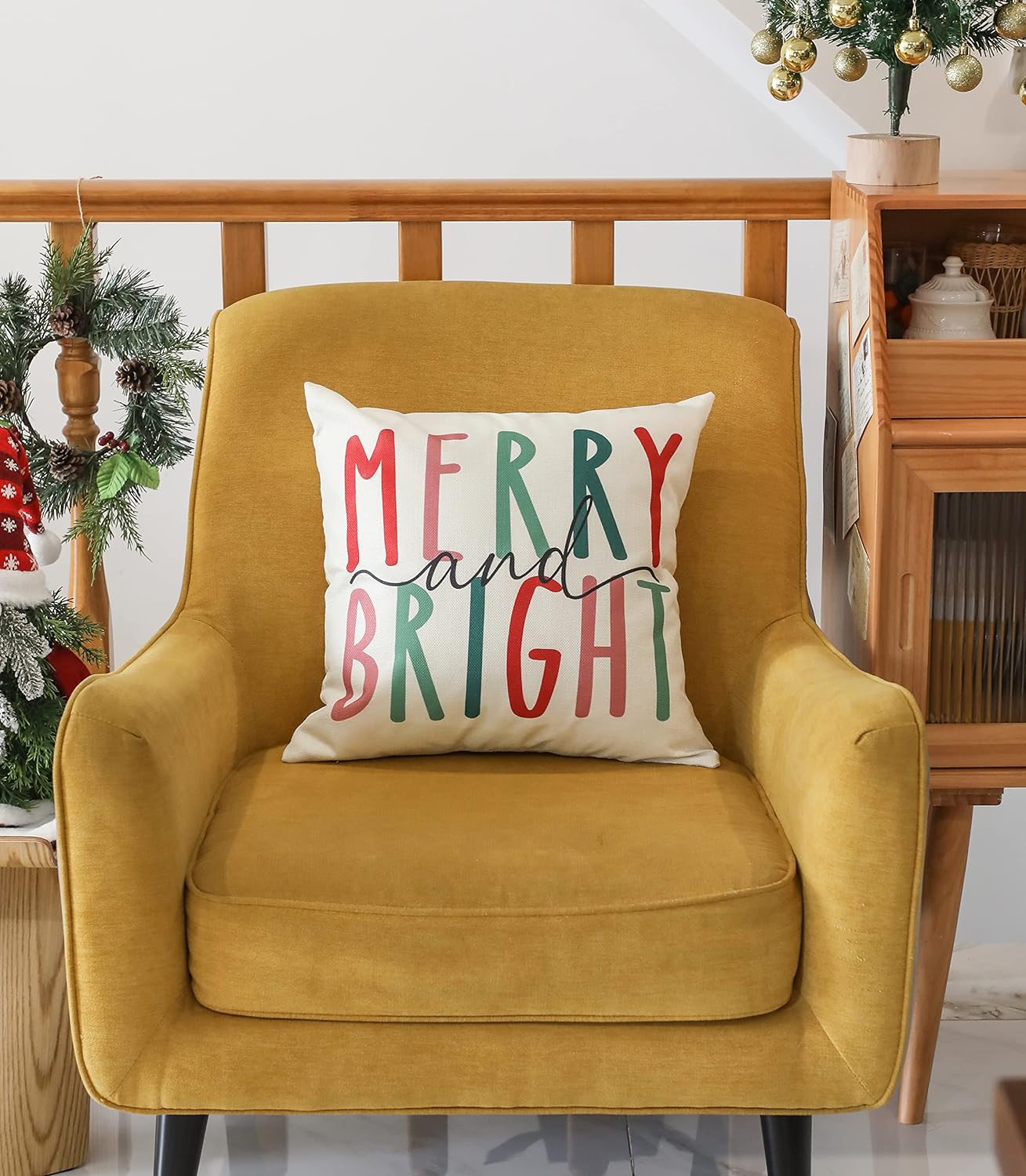 Merry Bright Christmas Pillow Covers Colorful Holiday Holly Jolly Set of 4 Winter Decorative Throw Pillow Covers Cushion Case for Home Sofa Bed Chair (18" L x 18" W)