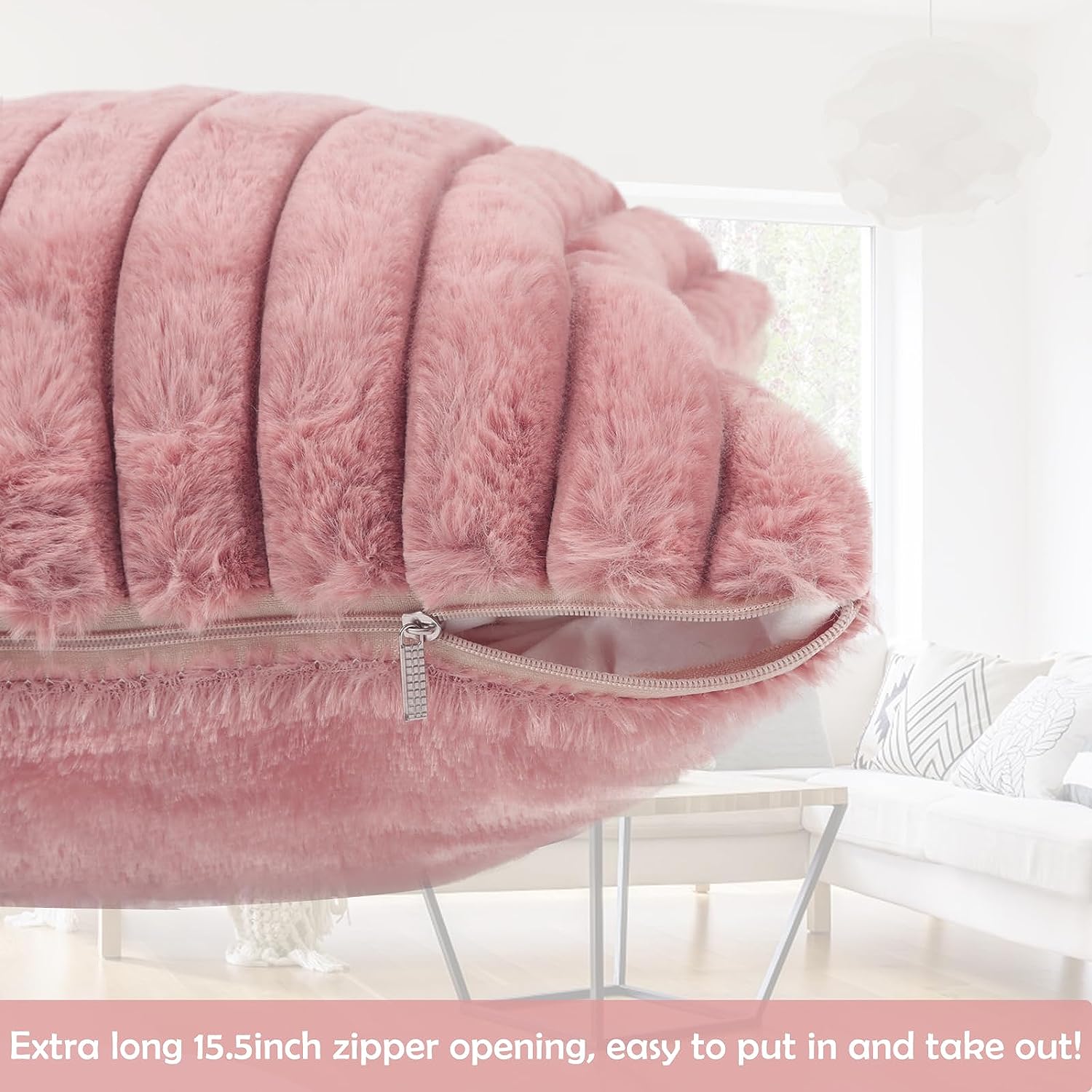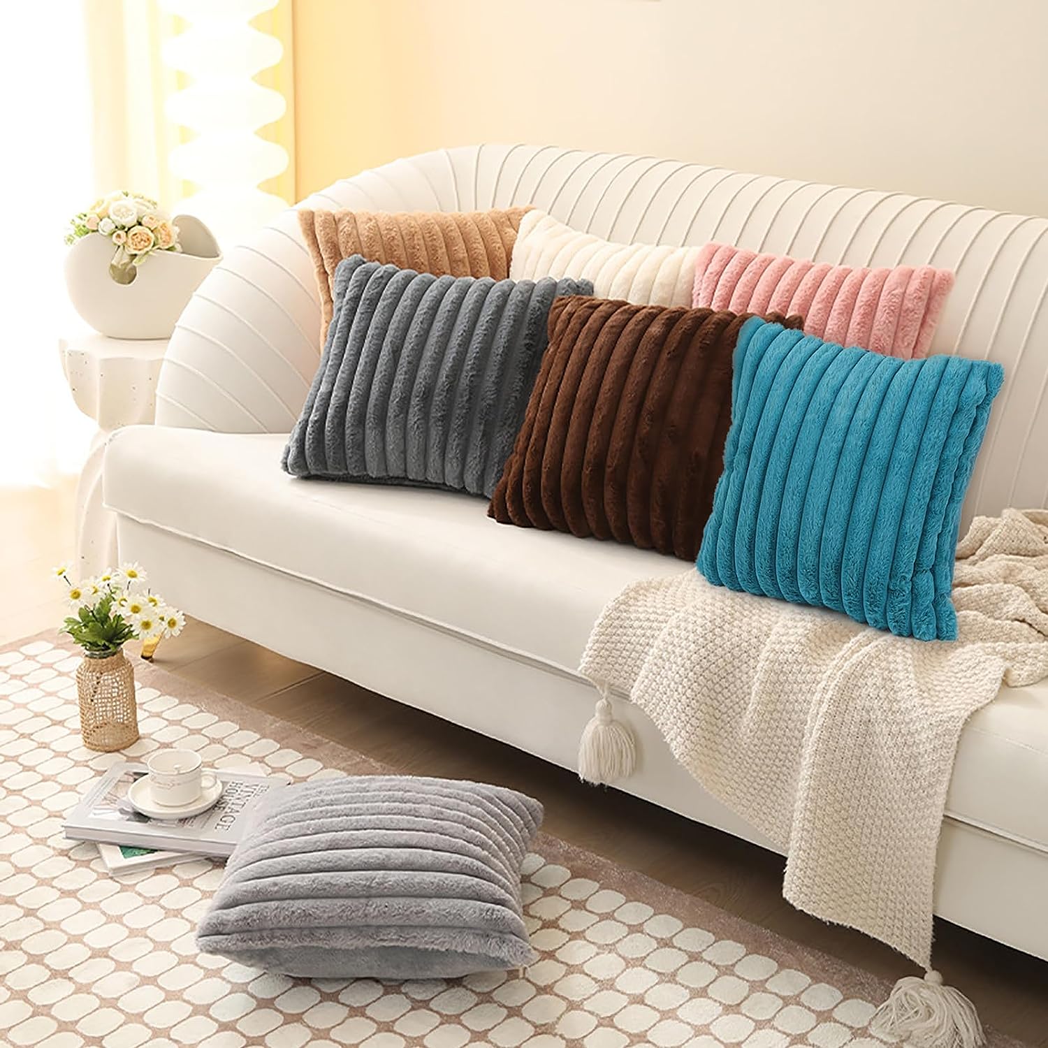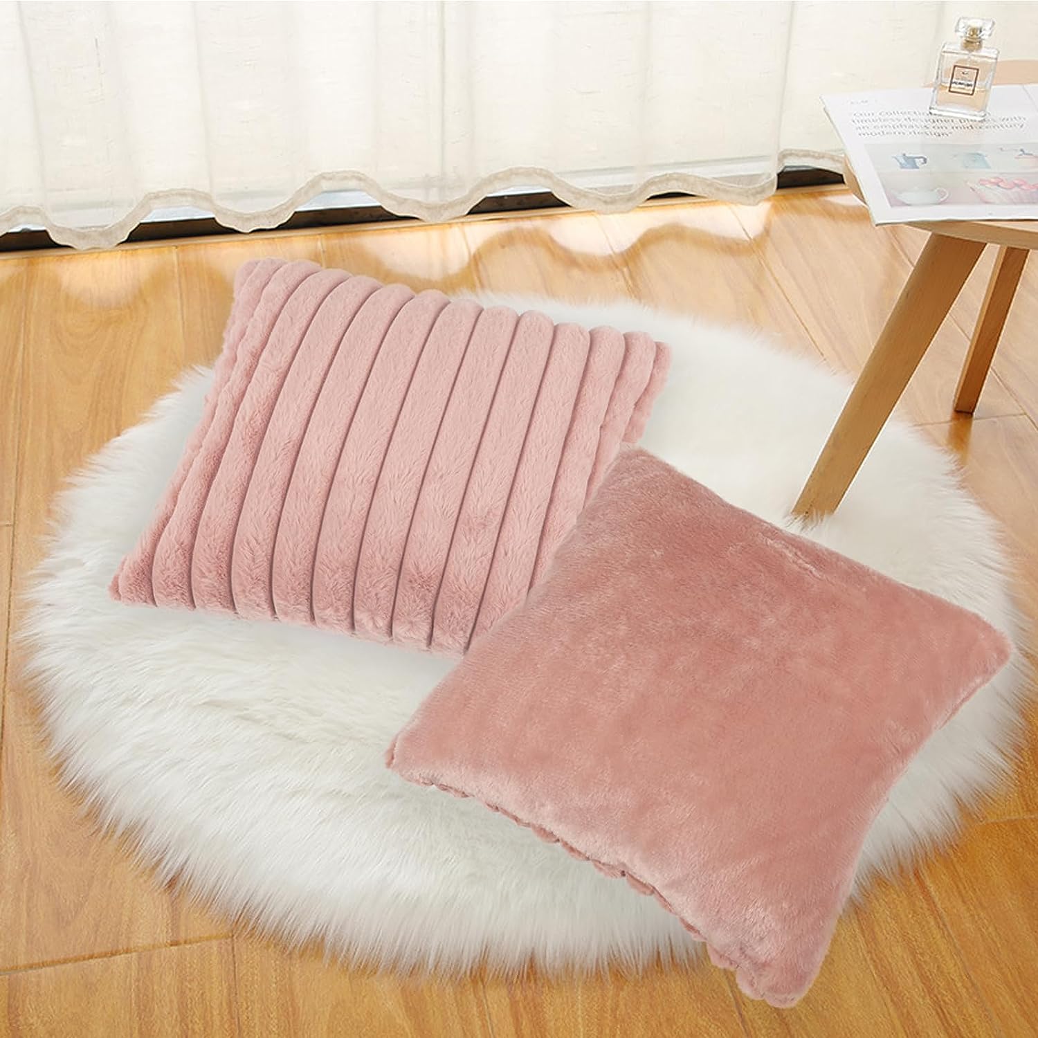 / MissSoul Set of 4 Decorative Throw Pillow Covers Faux Fur Striped Soft Fluffy Square Pillowcase for Bedroom Couch Sofa Chair Cushion Cover 18×18 Inch (Pink Series)