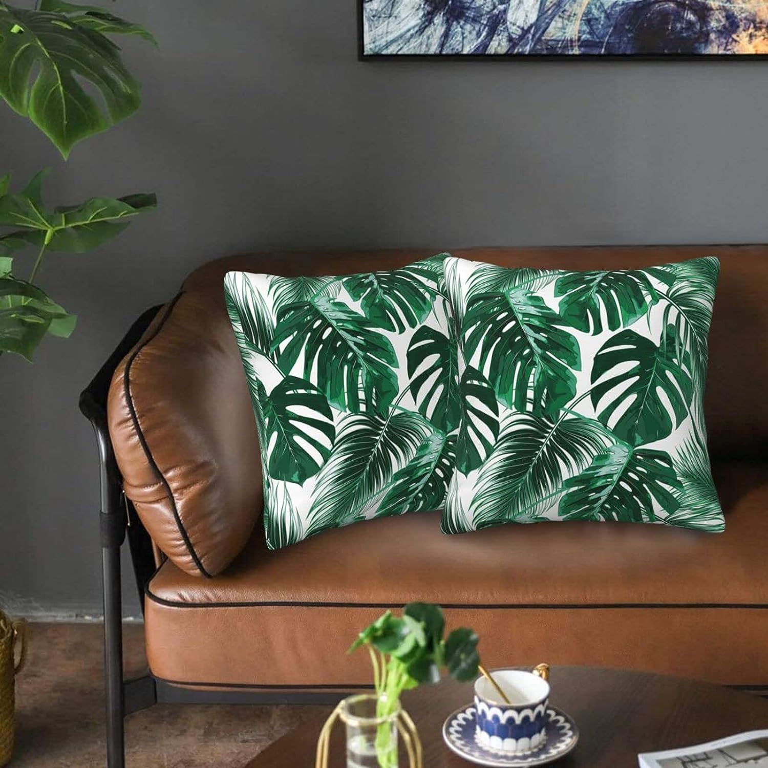 Osvbs Palm Leaf Leaves Tropical Green Plant Throw Pillow Covers Farmhouse Decorative Set of 2 Pillow Case Cushion Summer Pillows Cover Decor Home for Sofa Couch Bedroom Living Room 18x18 Inch