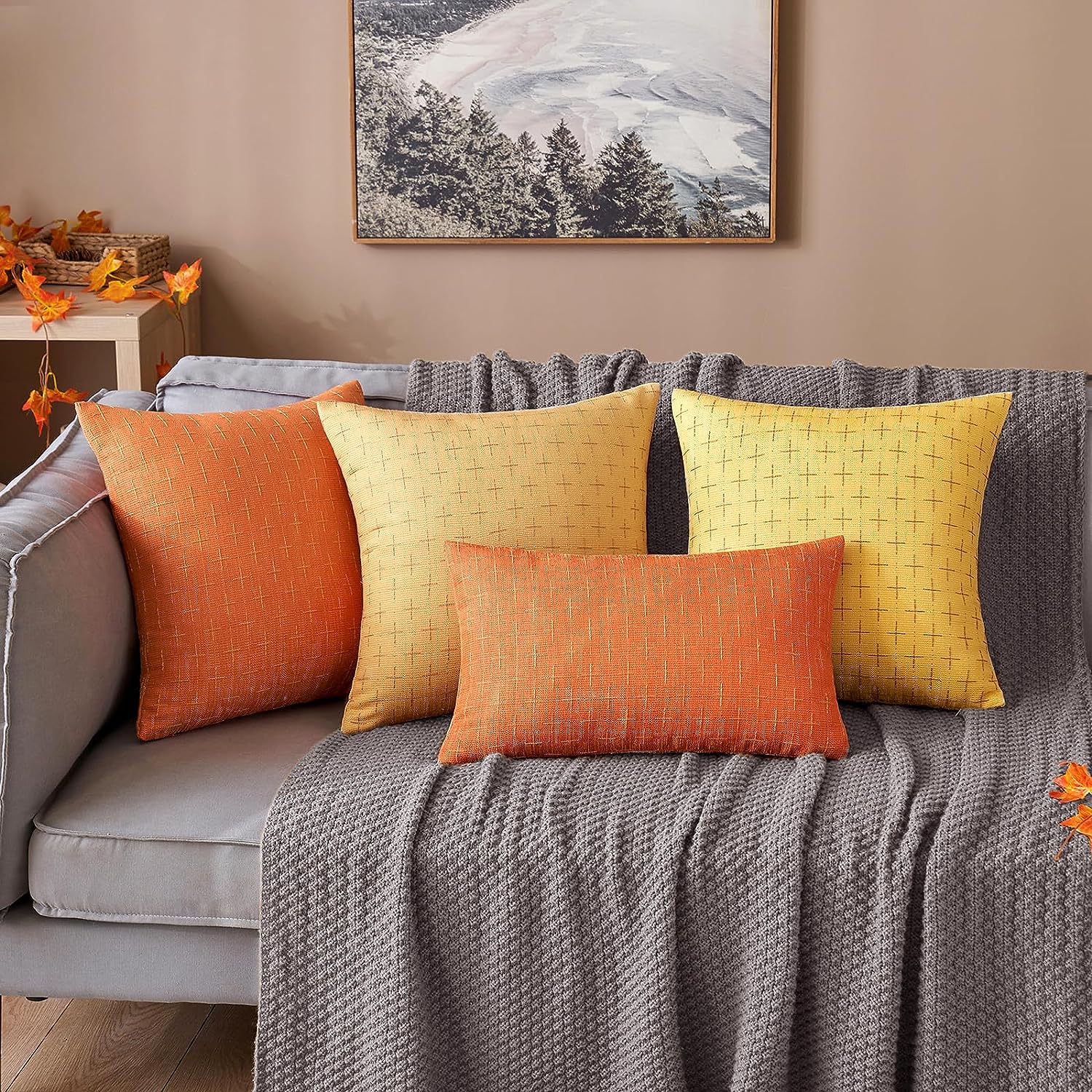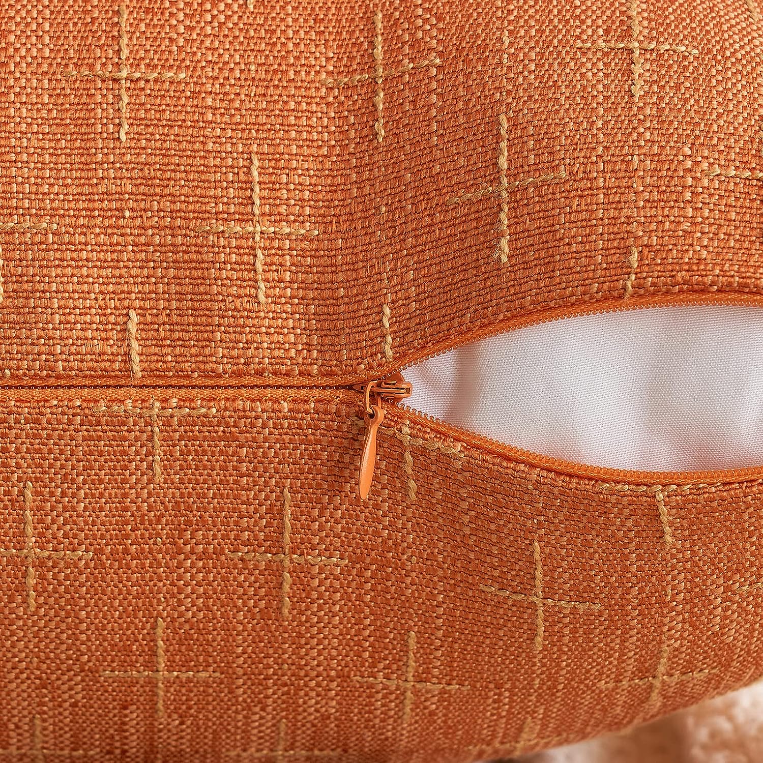 Pack of 2 Fall Decorative Burlap Linen Throw Pillow Covers Modern Farmhouse Pillowcase Rustic Woven Textured Cushion Cover for Sofa Couch Bed 18×18 Inch Burnt Orange