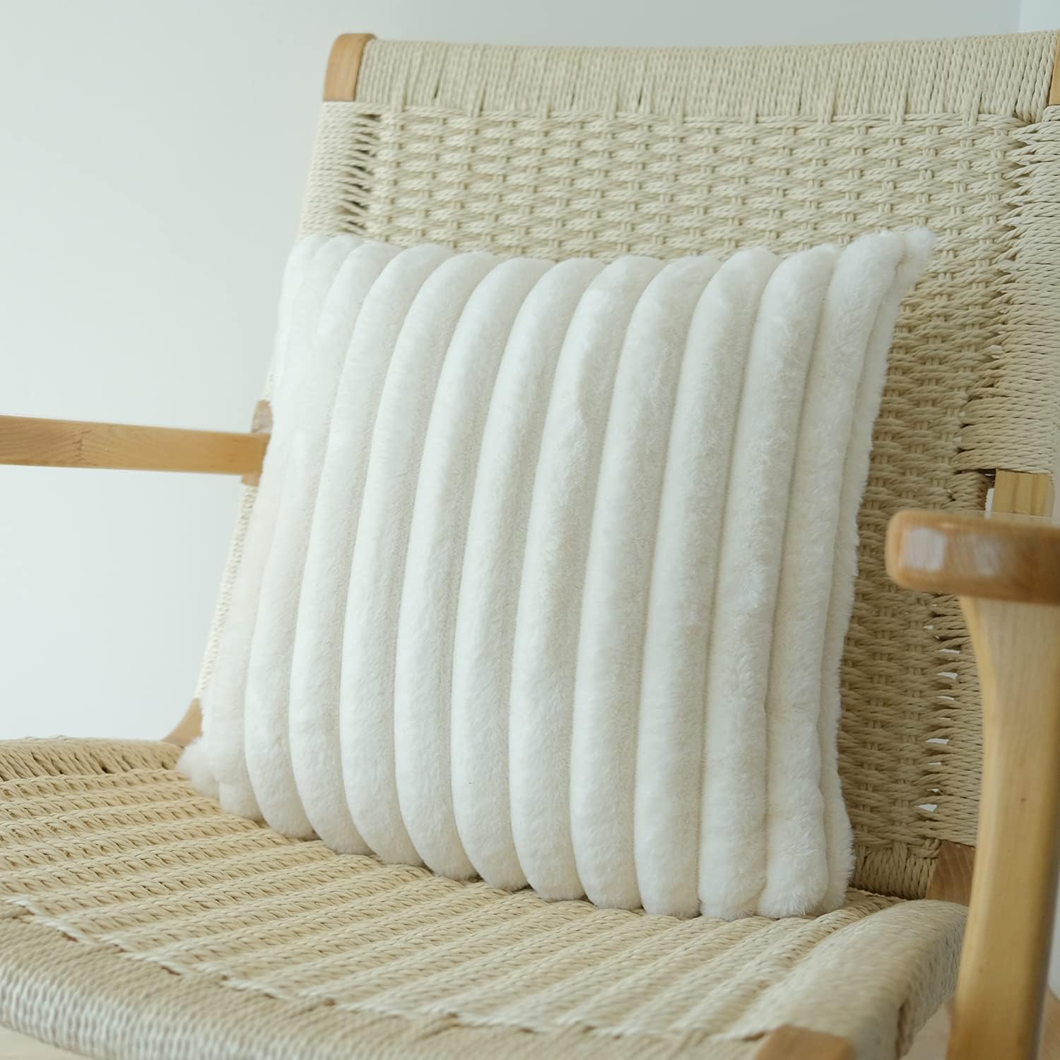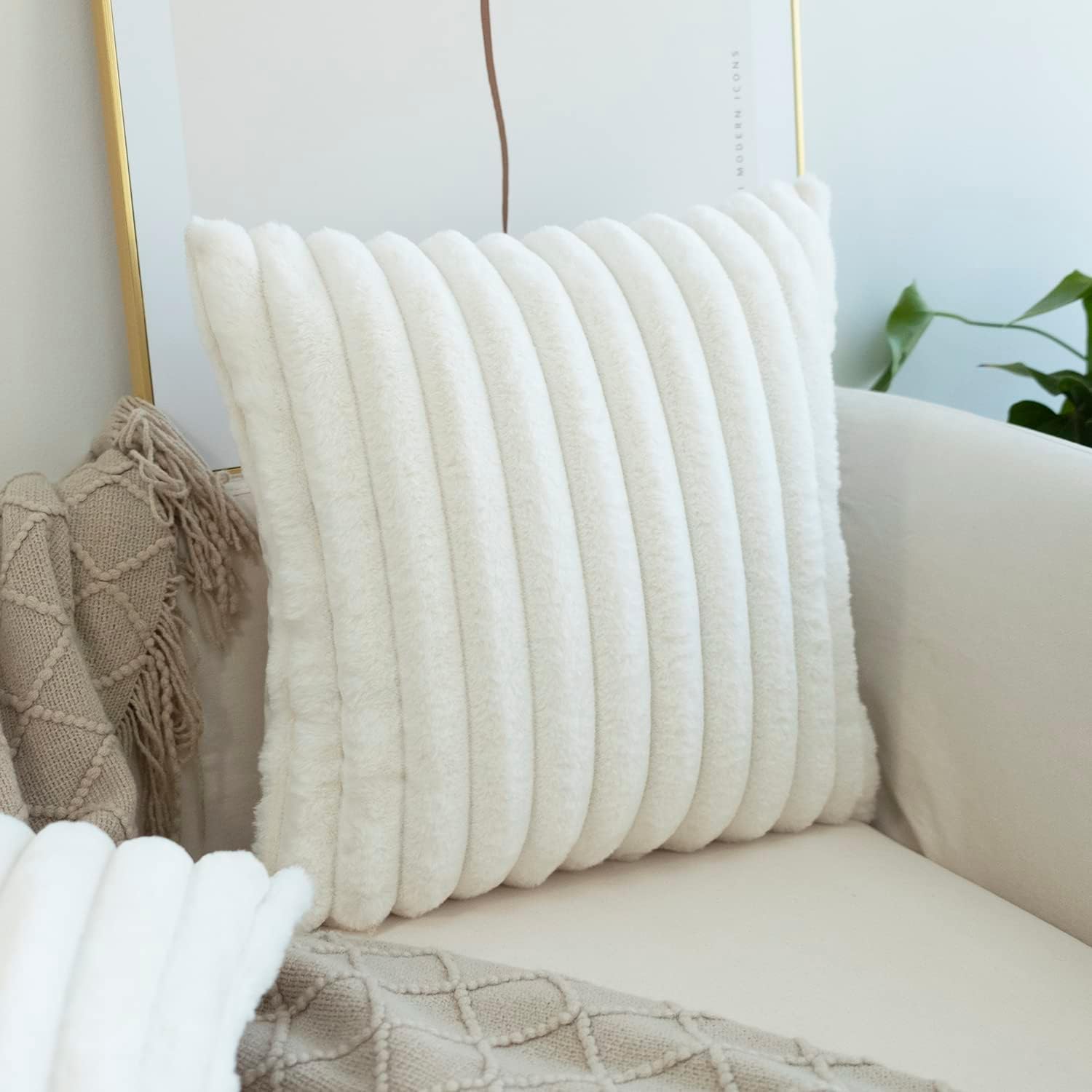 / Pack of 2 Faux Fur Plush Decorative Throw Pillow Covers Couch Cushion Case Soft Pillowcases, solid, for Home 18 x 18 Inch White