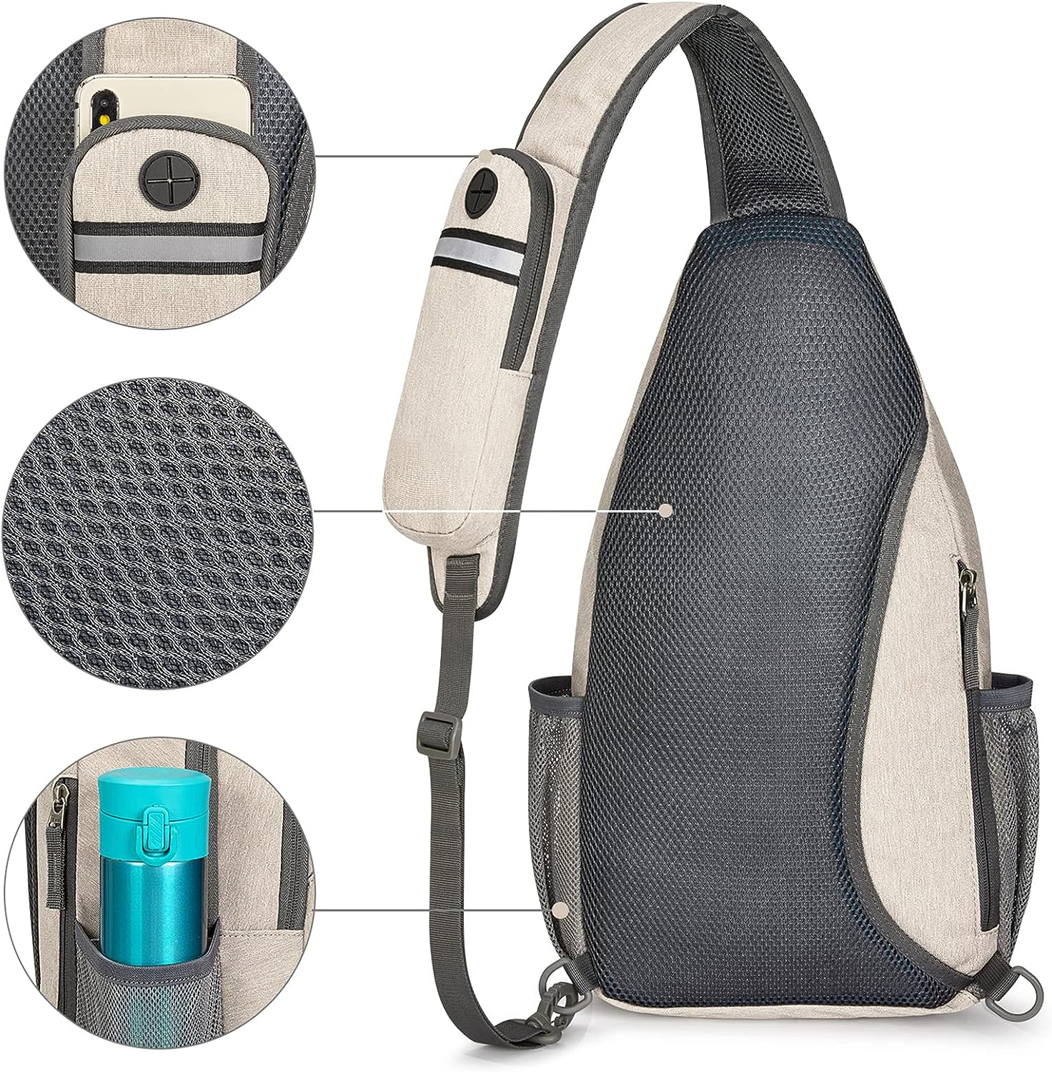 / Sling Bag RFID Blocking Sling Backpack Crossbody Chest Bag Daypack for Hiking Travel(Ivory)