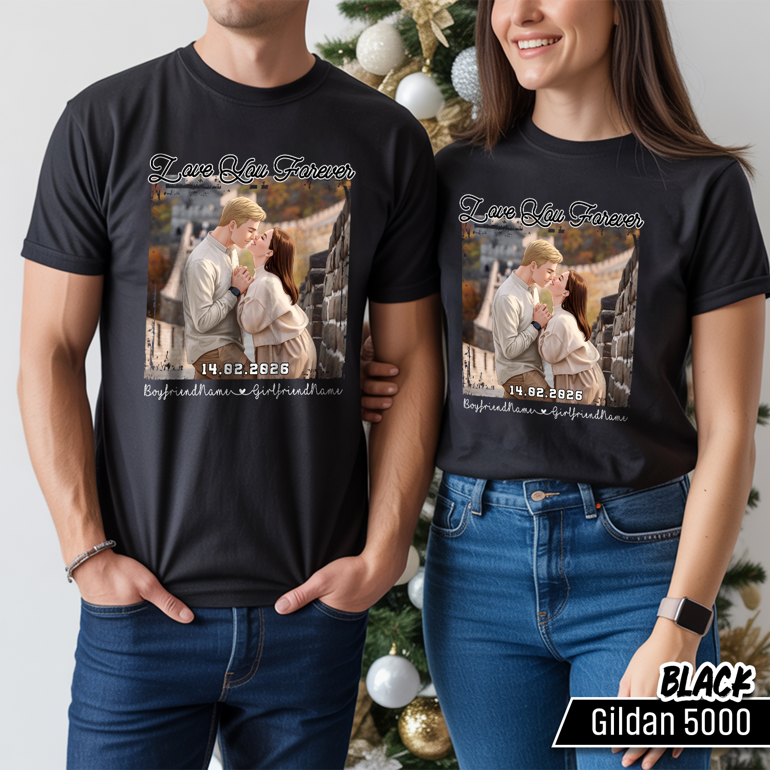 Custom Anime Couple Tee from Your Photo | Personalized Love You Forever Anime Portrait Shirt | Couple Gift with Names & Date