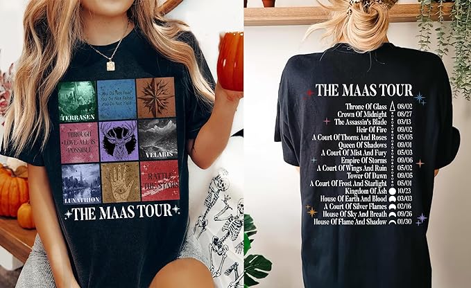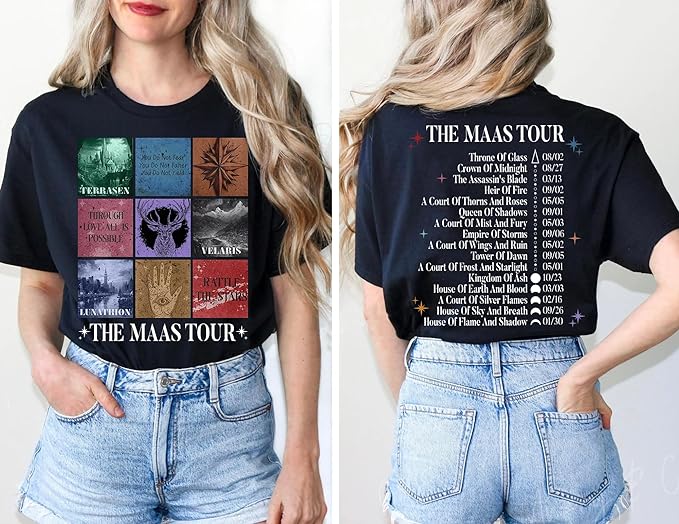 The Maas Tour Shirt – Sarah J Maas Tour Shirt, SJM 2 Sided T-Shirt for Fans, Medium, Light Pink