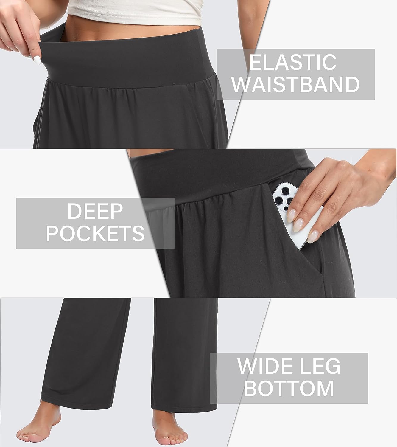 Womens Wide Leg Yoga Pants High Waisted Comfy Casual Loose Pants Workout Plus Size Lounge Sweatpants with Pockets
